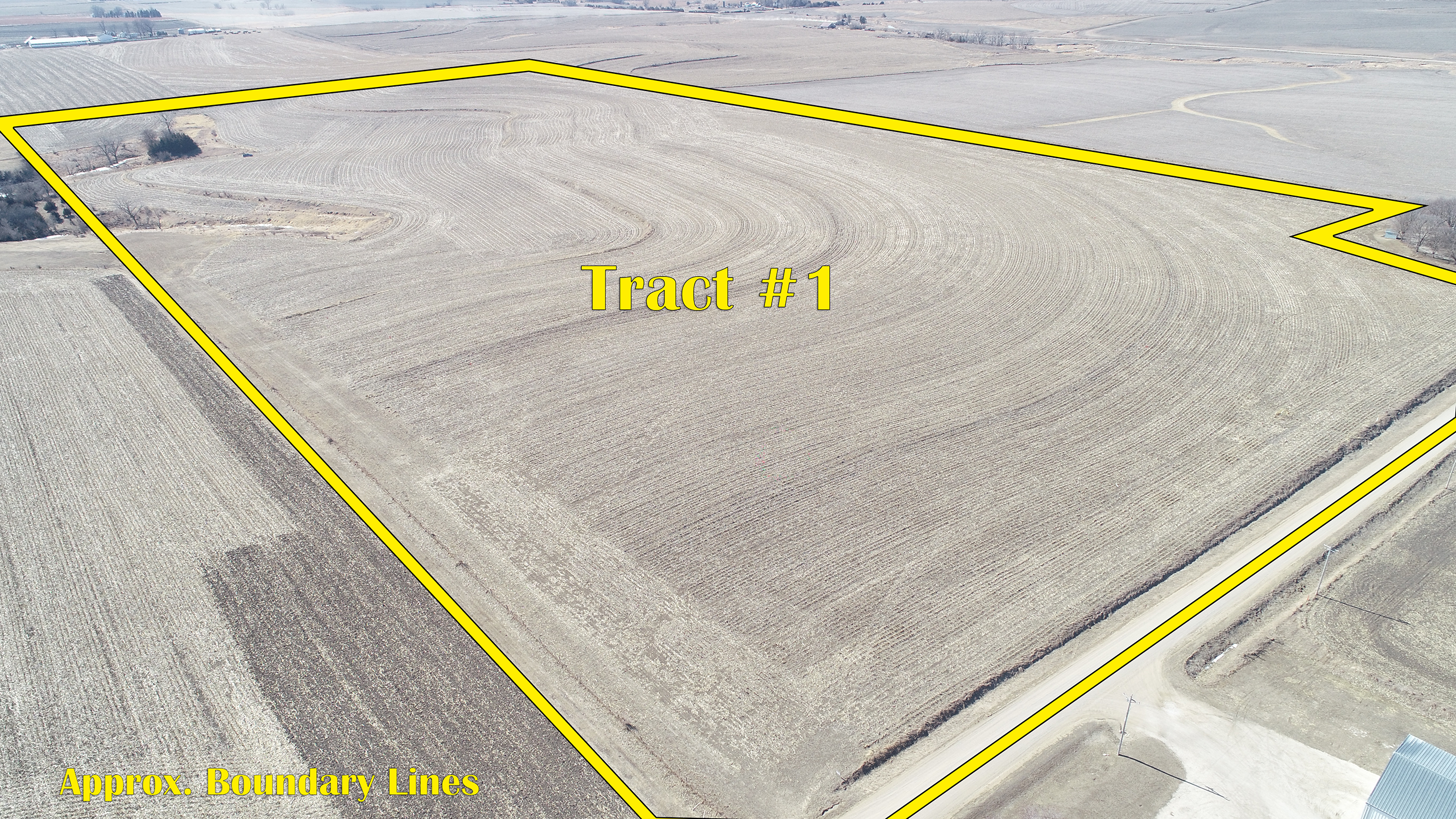 Tract Location: From Cherokee, IA go West on W Main St./C38(530th ST) for approx. 1 1/2 mile to N Ave. then go South on N Ave. for 2 miles to 550th St. then go East on 550th St. for approx. 1/4 mile. Tracts 1 and 2 are both on the South side of 550th St. and adjoin each other. Tract 1 adjoins 550th St. & Tract 2 adjoins both 550th St. and N Ave.