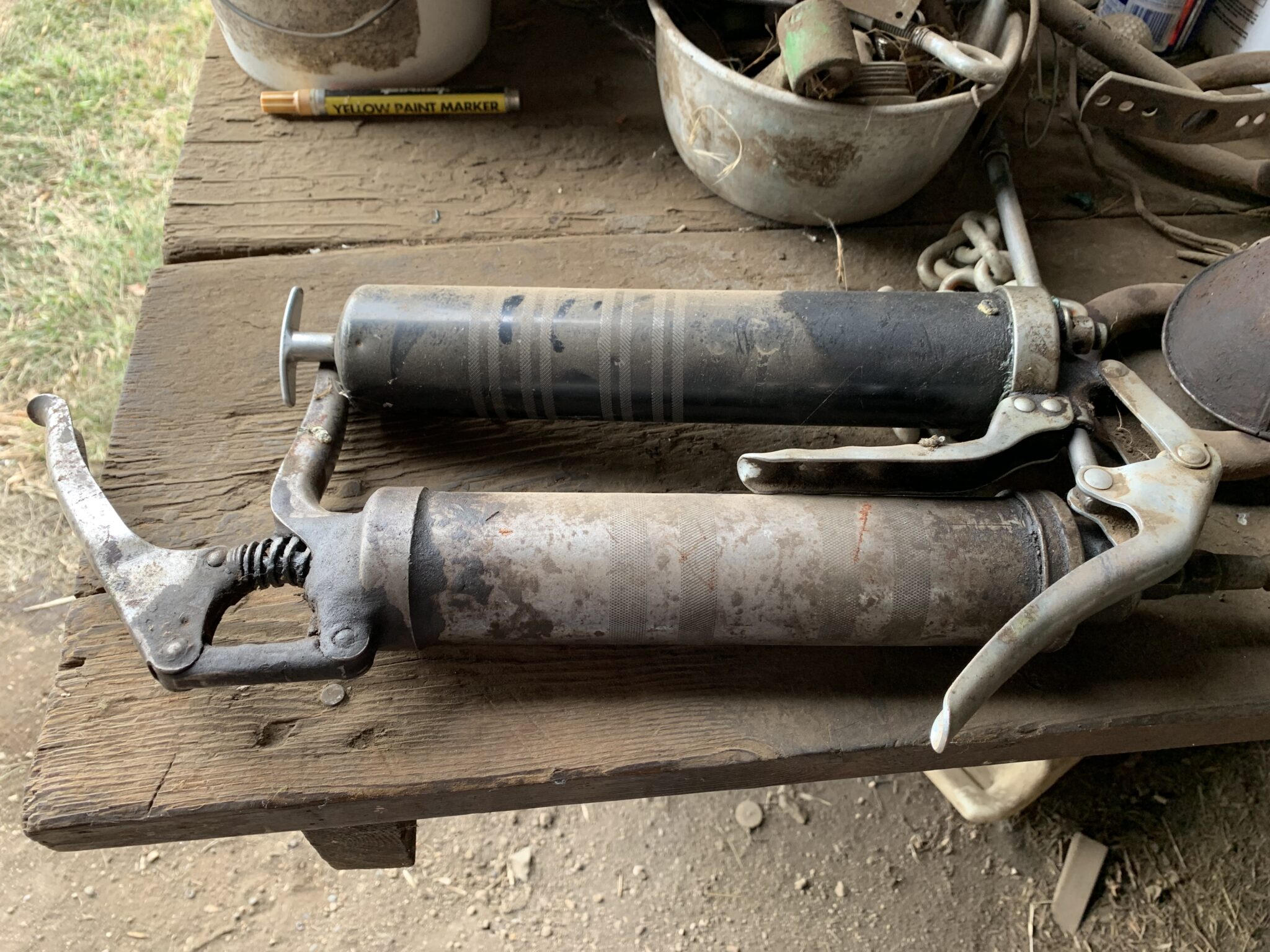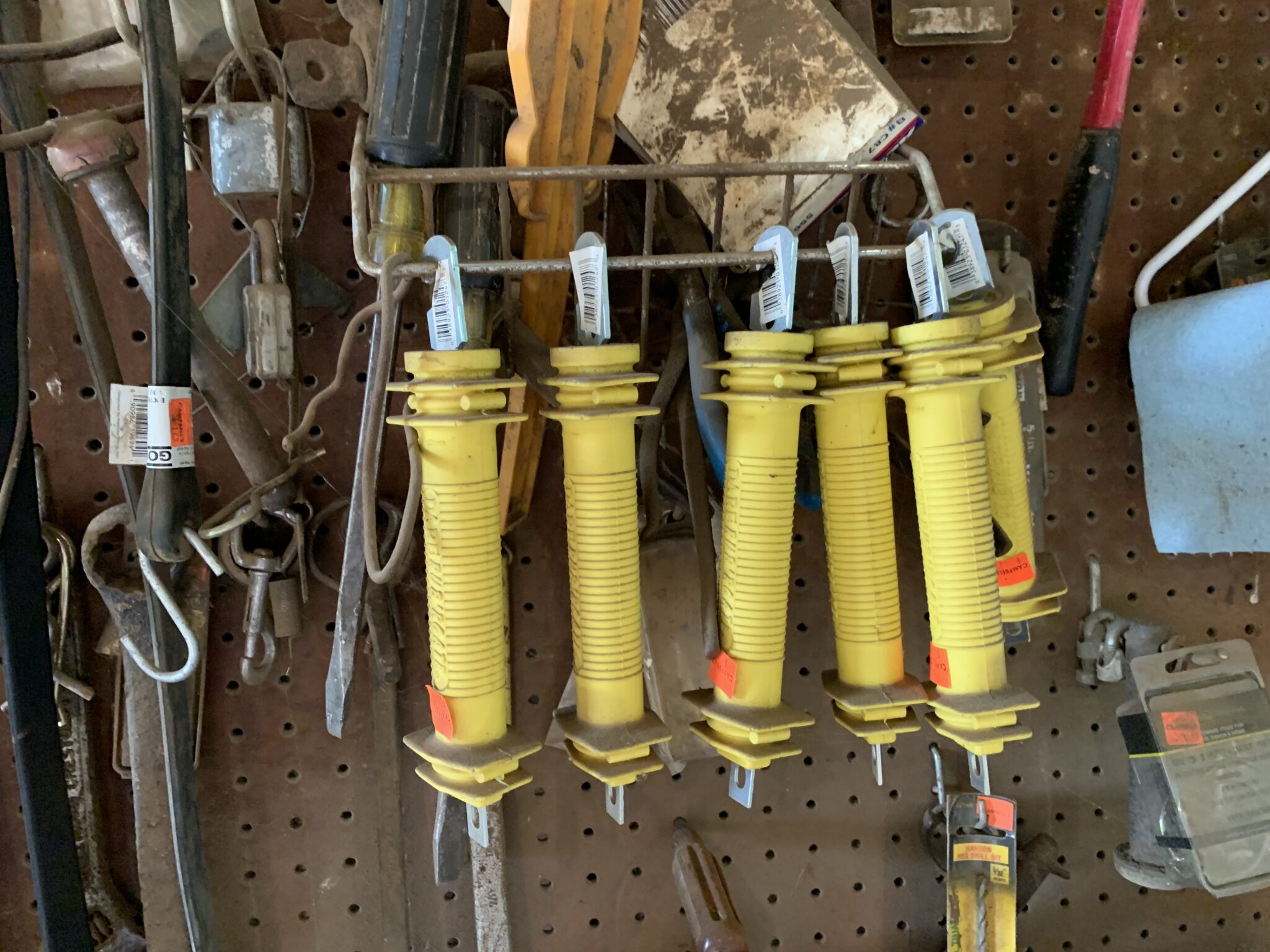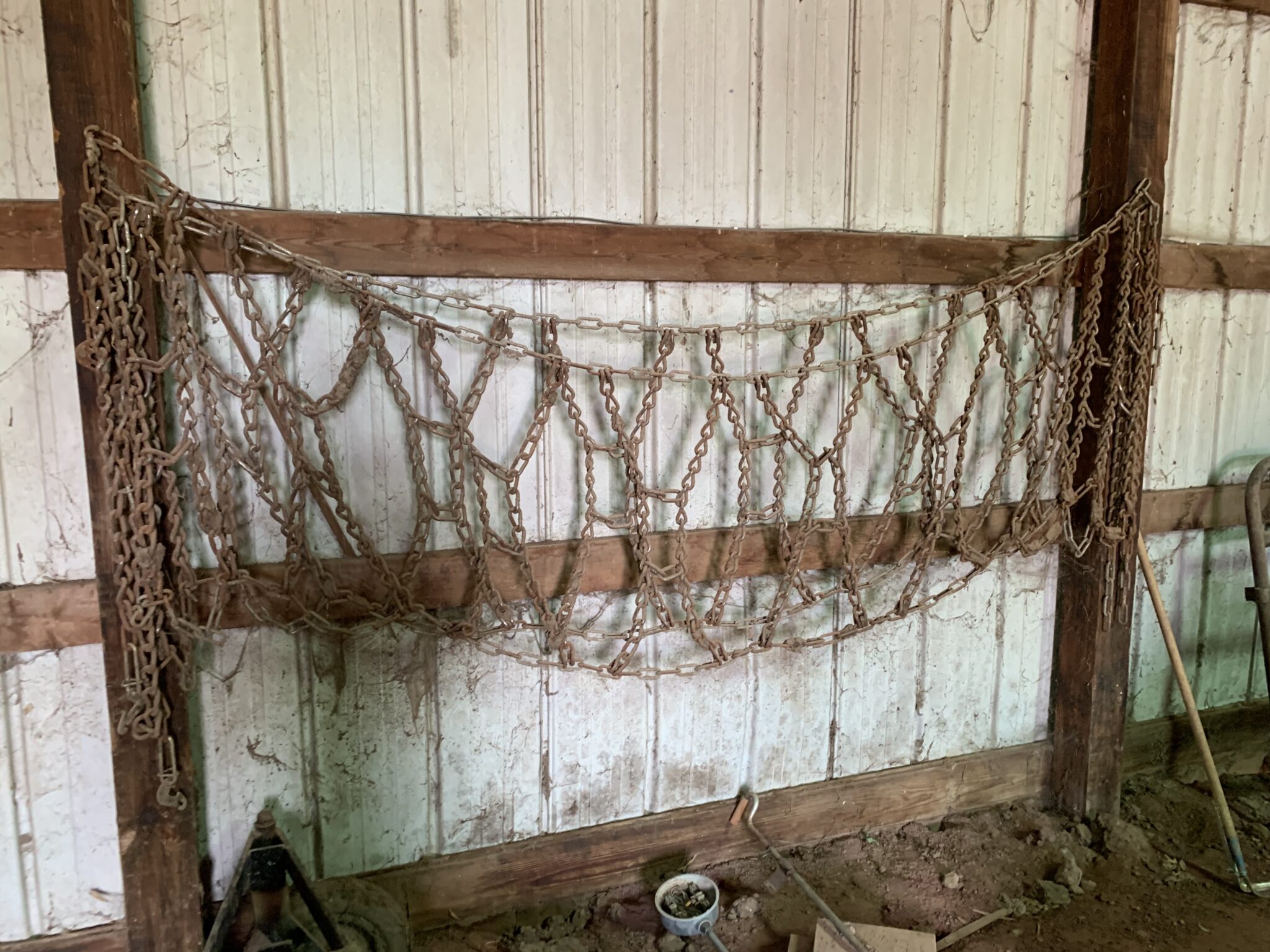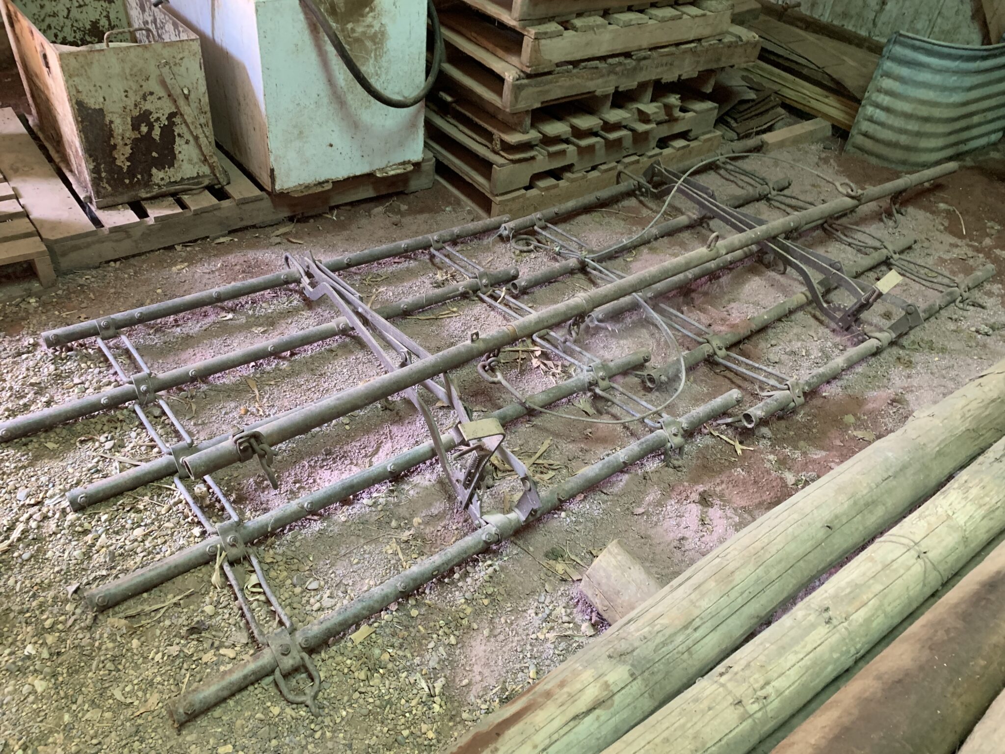 Tools: Craftsman 150PSI 33 gallon air compressor: post pounder, post hole digger, pitch forks: saws: wrenches: metric socket set: punches: files: Lesota elec drill: assort of nuts/bolts/screws: