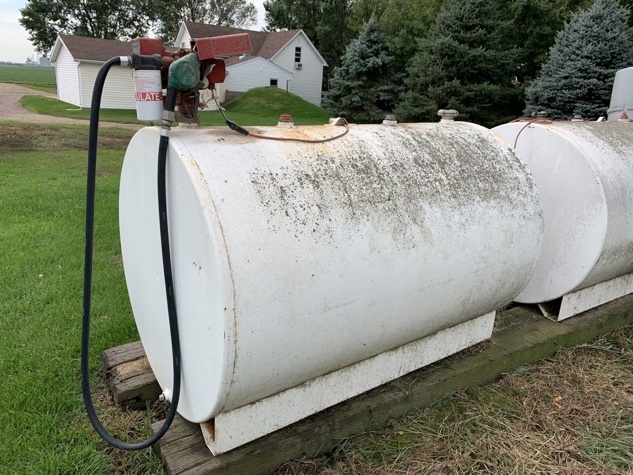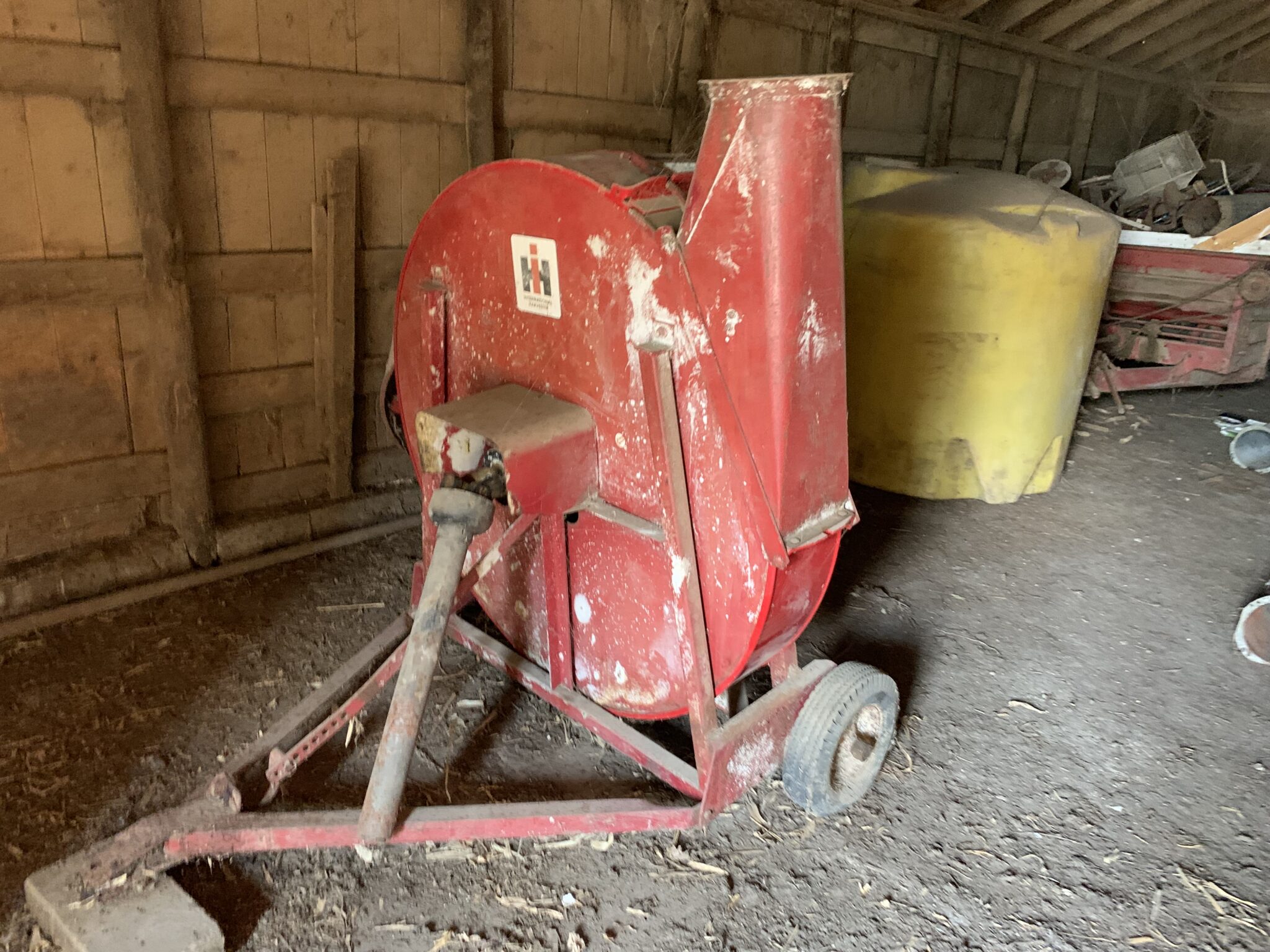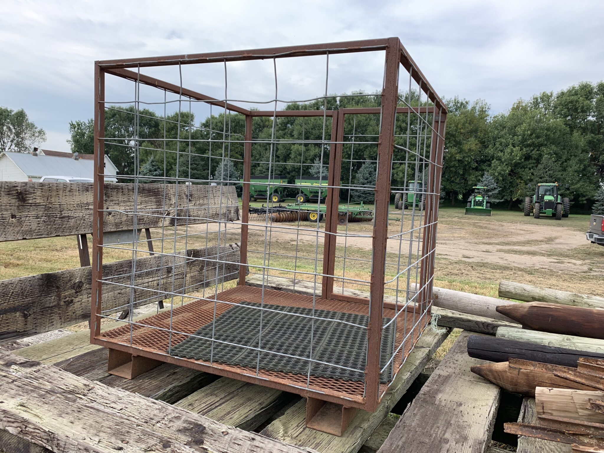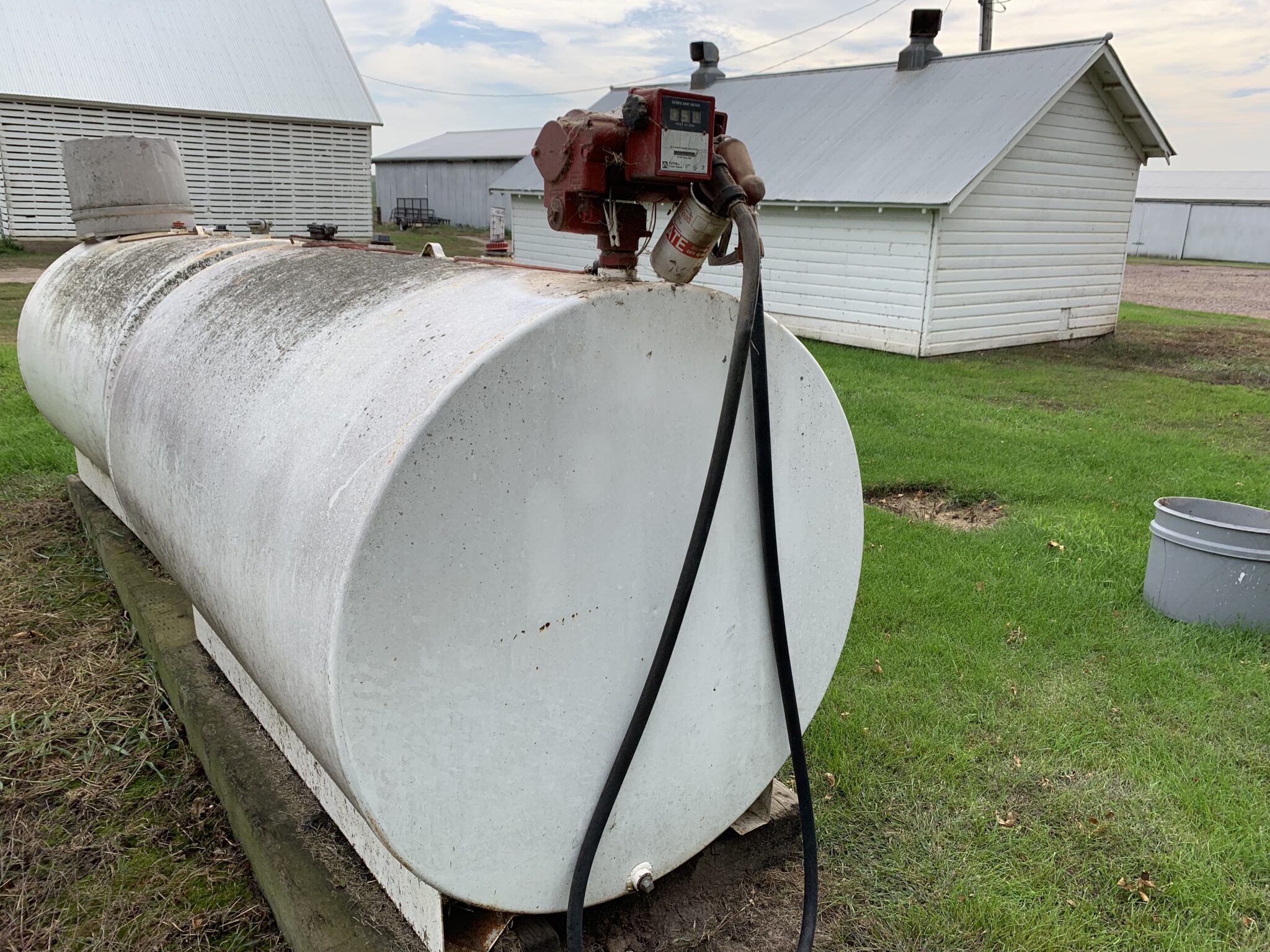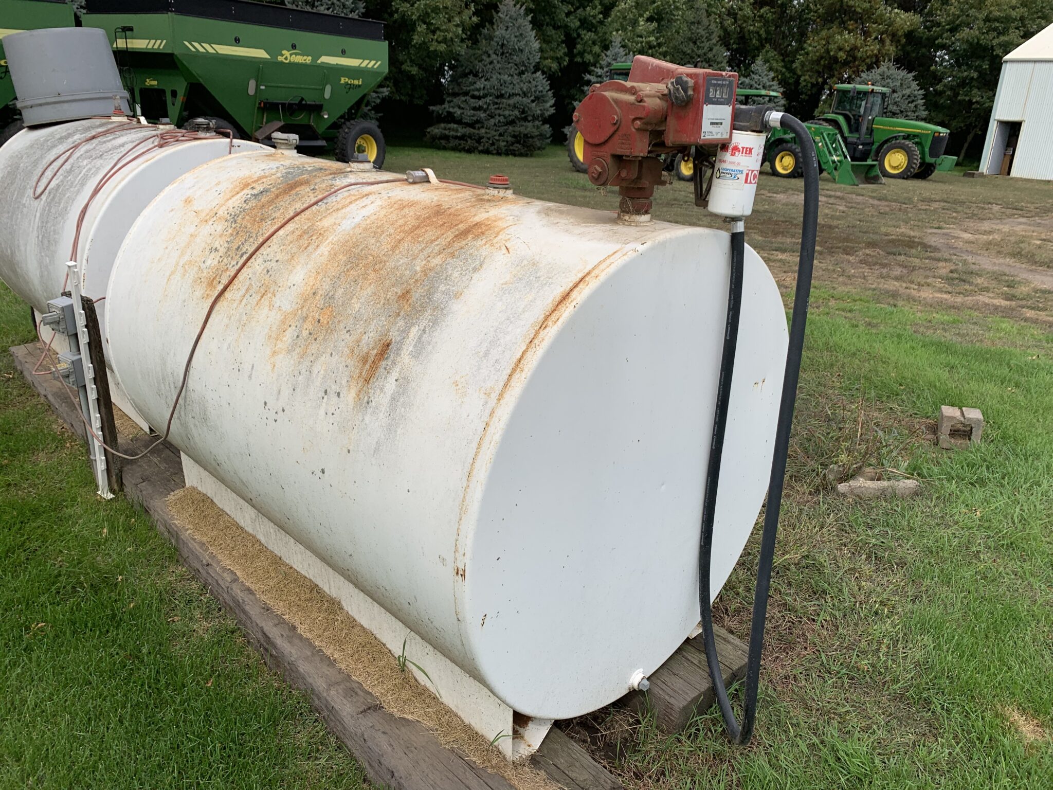 Misc: 1500 gallon liquid protein tank w/ pump and stand: 1000 gallon poly water tank: 1 1/2 HP new elec motor: Zoeller sump pump: 5.5HP briggs transfer pump: Steel trash dumpster: new 15-40 oil: 9—IH suitcase weights: steel garden chairs: 2pt adapter arms: 3–4’x8’ Cattle mats(2 new): 500’ of corn crib snowfence: 2 sets of 18.4-38 tractor chains: 1 set of 16.9-38 tractor chains:
