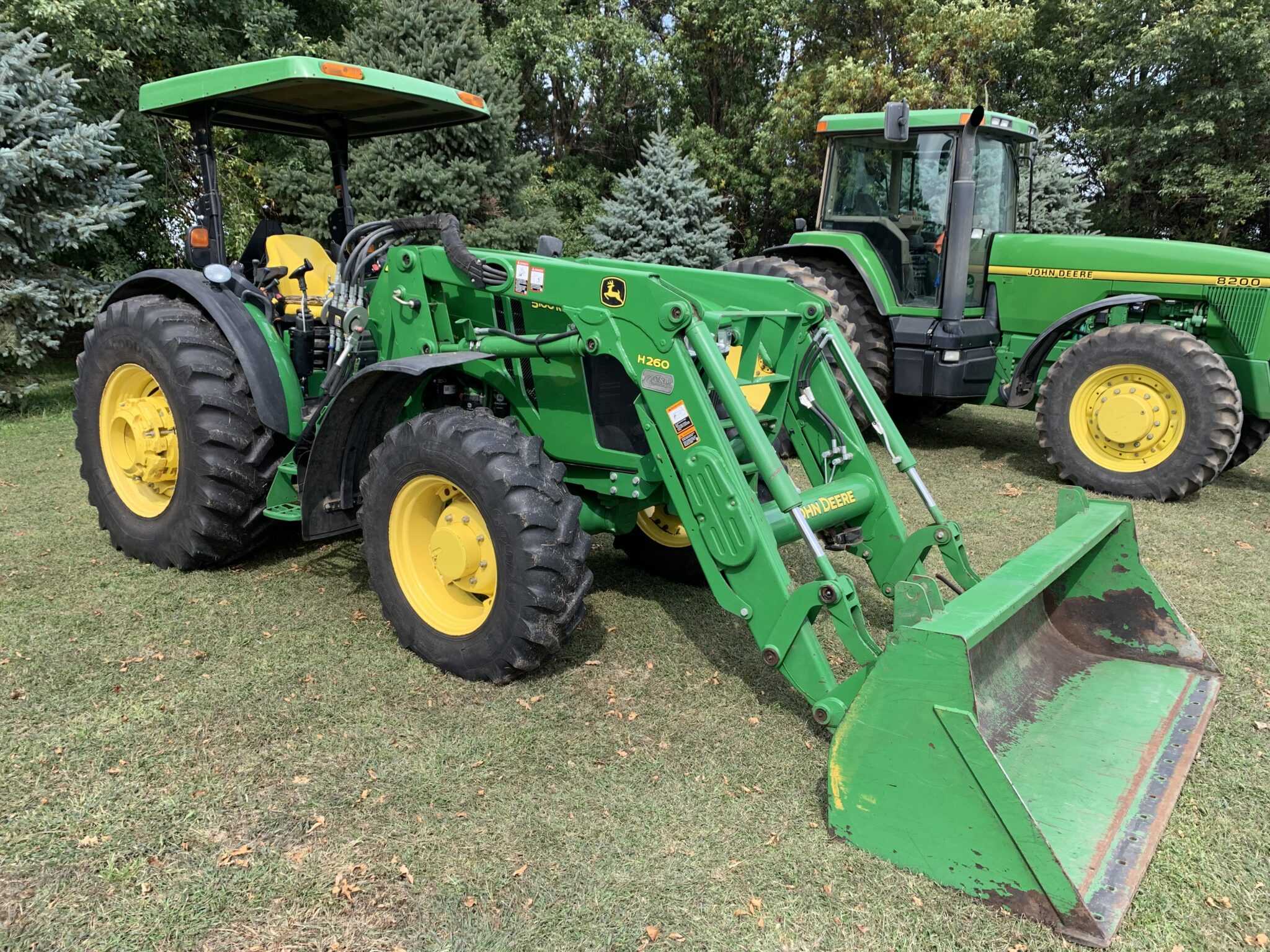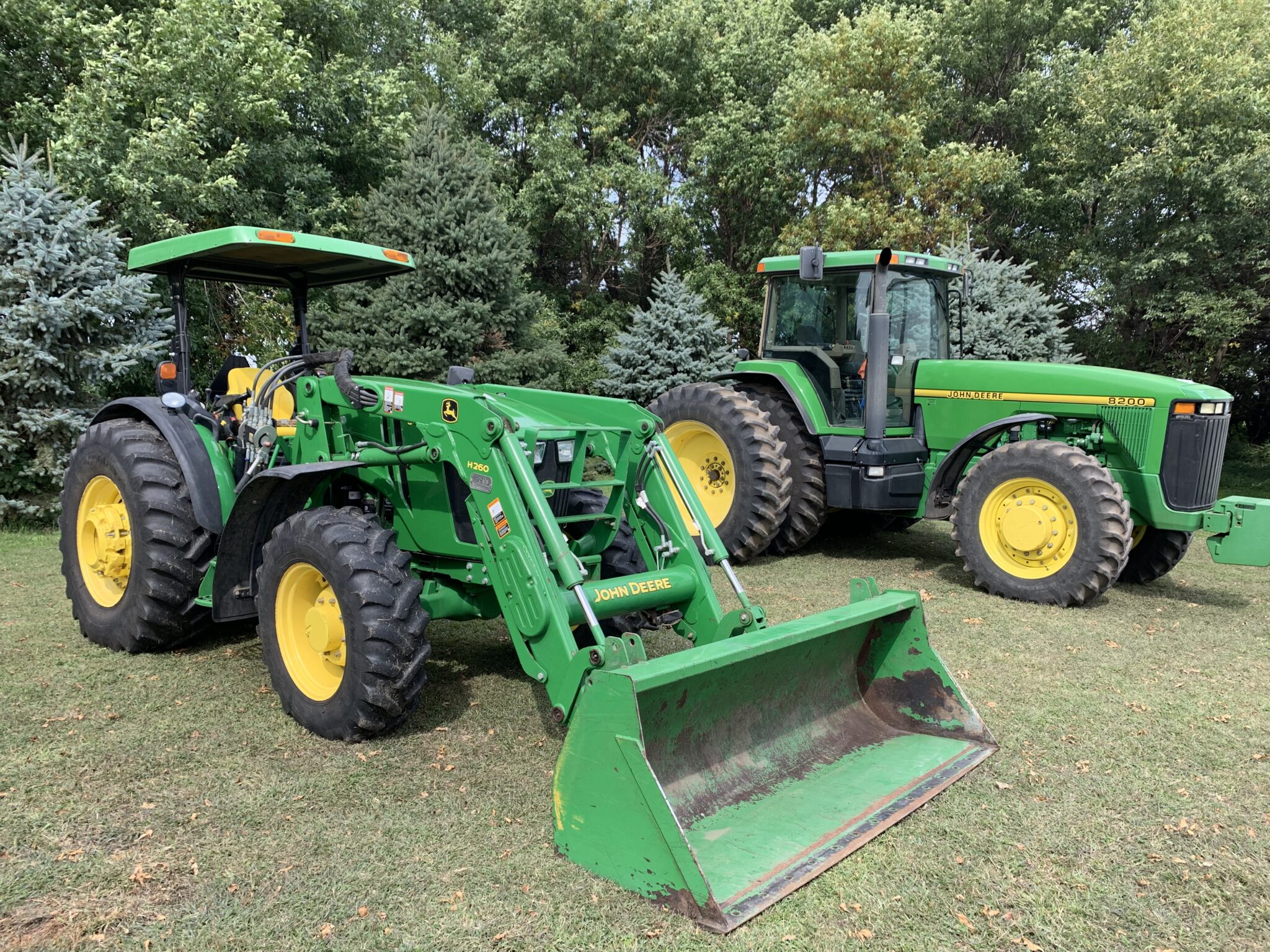 Tractors: 1995 John Deere 8200 FWA Tractor-2nd owner, SN-RW8200P001973, shows 5535 hours, heat, air, radio, buddy seat, front fenders, 380/85R30 fronts, 480/80R42 rears w/ duals, 1 set of 205kg wheel weights, quick hitch, 3 remotes, 1000 pto, 3pt,, 16 spd powershift, 10-47KG front suitcase weights: 2012 John Deere 5100M FWA Tractor w/ JD H260 Loader w/ 7’bucket-2nd Owner-SN-1LV5100MPCS432514, shows 2260 hours, 12.4R24 front tires, 18.4R30 rears, 3 sets of rear wheel weights, 3pt, 540 pto, 3 rear remotes, joystick, left hand reverser, canopy, quad w/ high/low, foot throttle: 1983 John Deere 4450 Tractor—SN-RW4450H005904, shows 7,025 hrs, 3 remotes, 3pt, 540/1000 pto, 18.4R38 rear rubber w/ duals, 3 sets of rear wheel weights, heat,