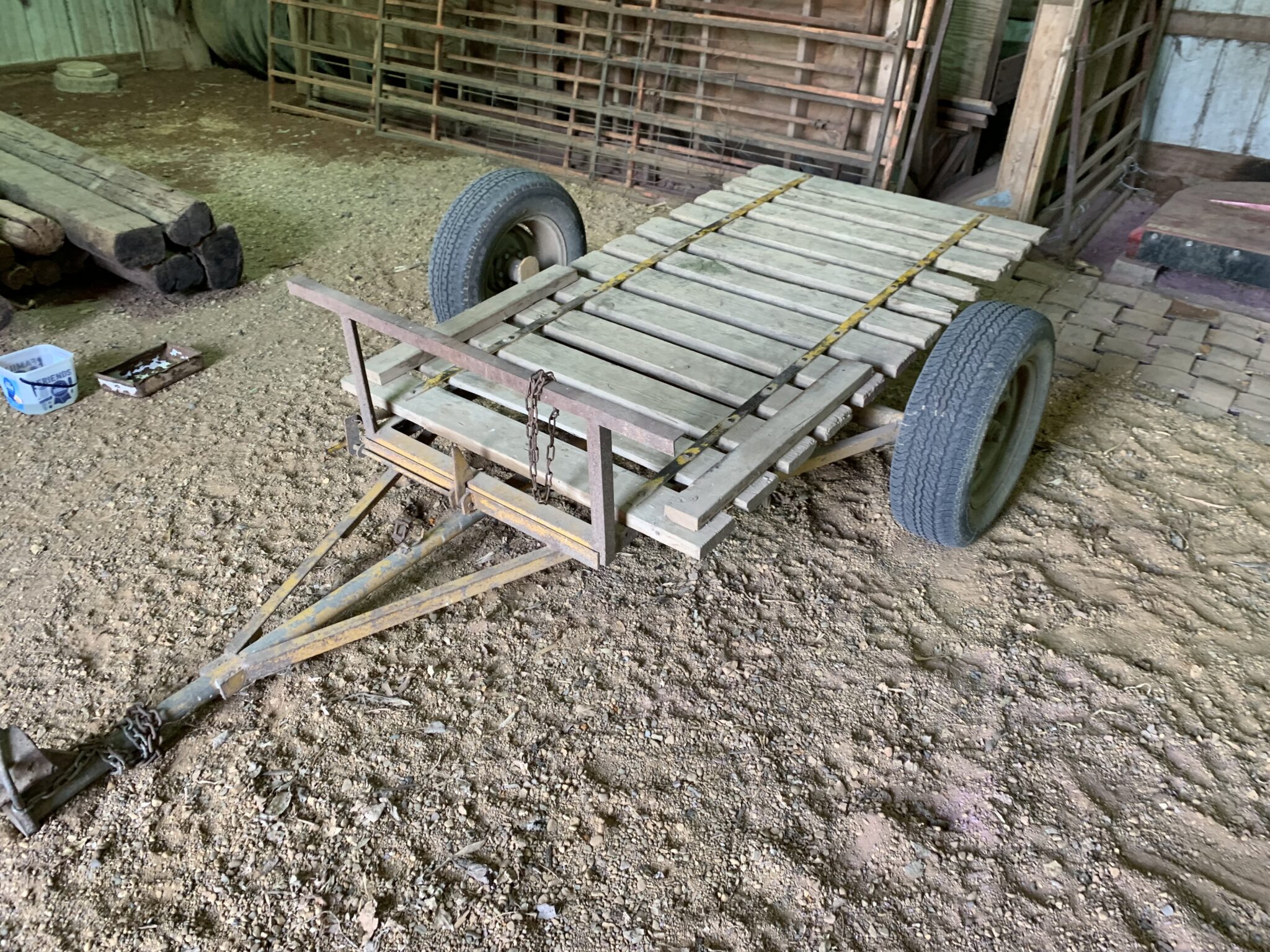 Farm Equipment: 8’x18 1/2’ Flatbed—Doon sawmill 3” bed, JD gear, 245/75R16 tires: Calf catcher—50”x50” pallet fork or 3pt: