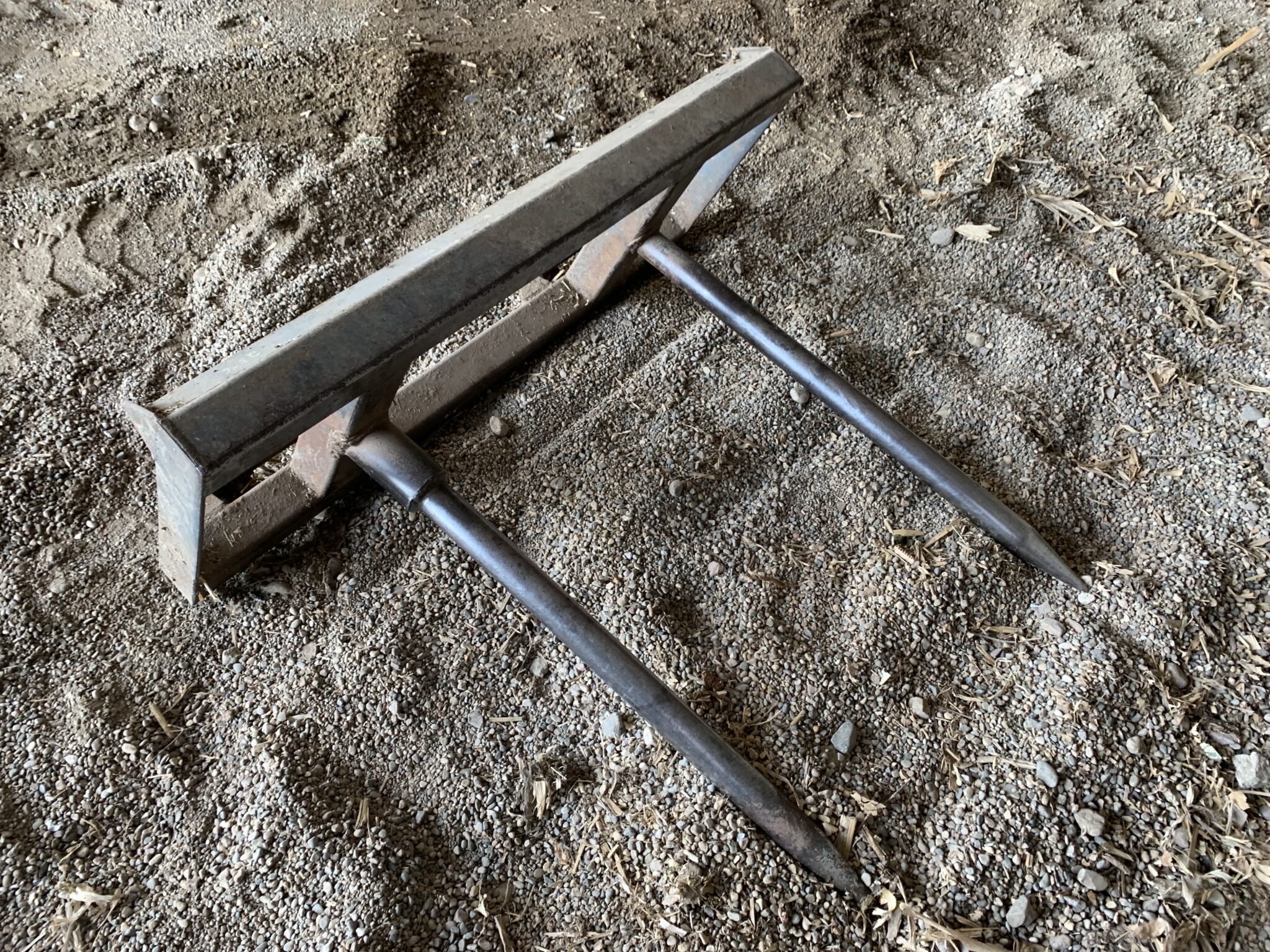 JD loader attachments: MDS euro double prong bale spear: bucket mount loader spear: