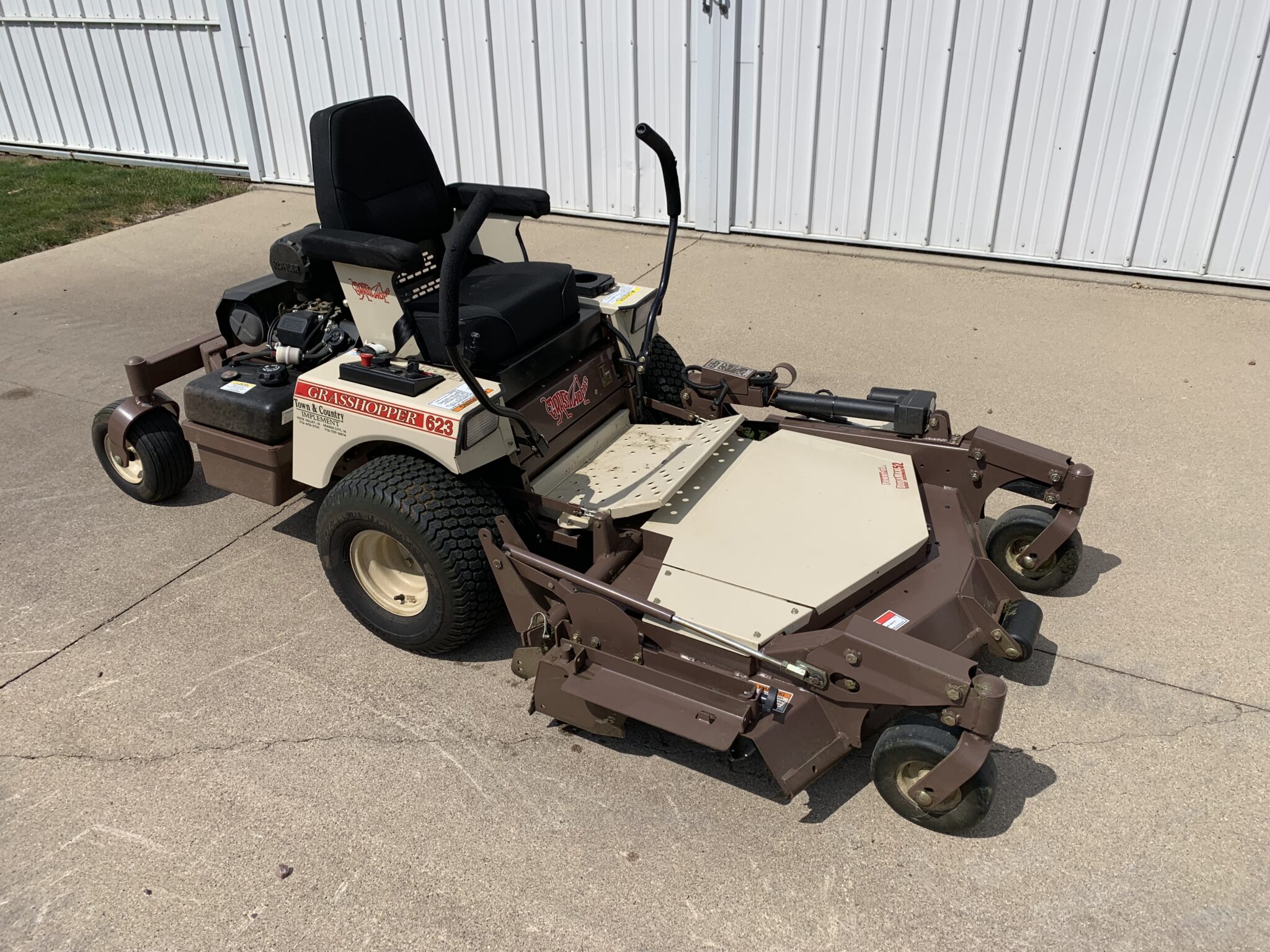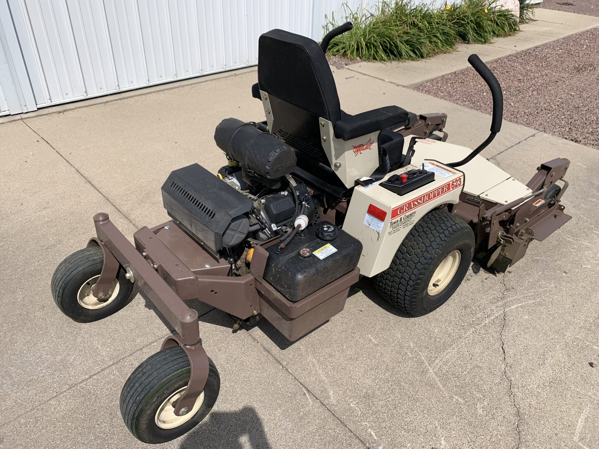 Lawn Mowers: 2015 Grasshopper 623 Zero Turn lawn mower—1 owner, shows 350 hours, power fold deck, 52” deck, Kohler 694cc gas eng: John Deere LX277 Riding lawn mower—48” deck, hydro, 17.5HP inteck eng: Husqvarna 22” push mower-Briggs eng.