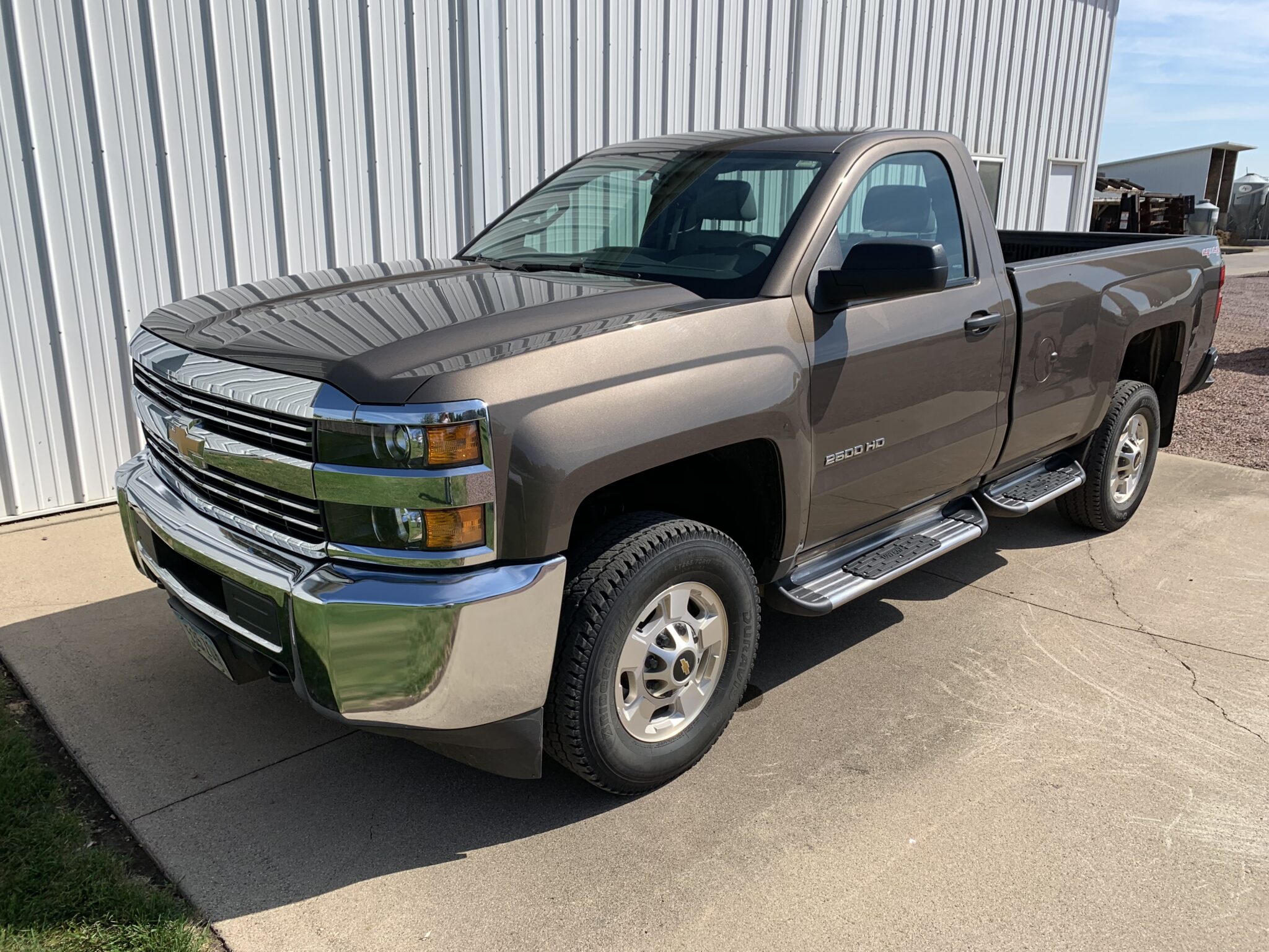 Pickup: 2015 Chevy Silverado 2500HD Reg Cab Pickup—1 Owner—only 23,500 miles, 4WD, 8’ box, running boards, plastic bedliner, V8 gas engine, leather, heat, radio, a/c, regular cab, VIN-1GC0KUEGXFZ512408