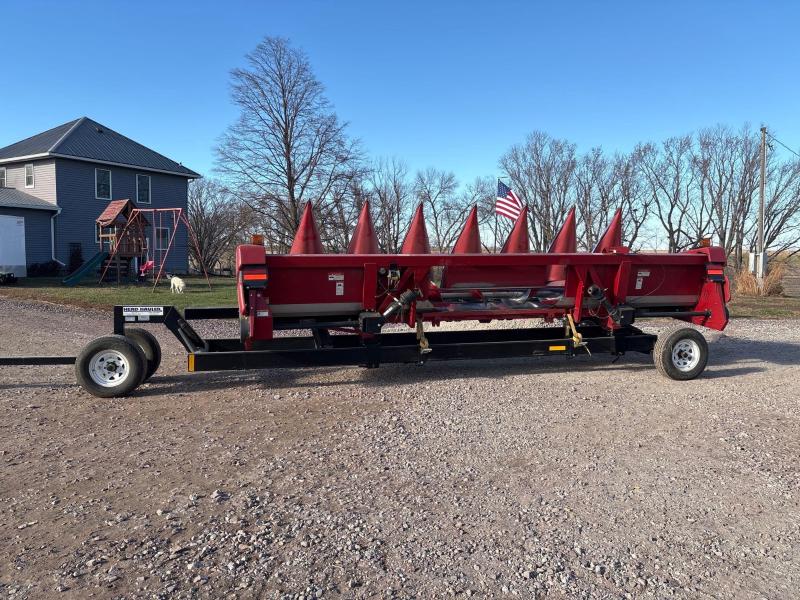 Corn Head: 2009 Case IH 3408 30’ 8 Row Corn Head with Cart–Owner Retired, Always Shedded, 30” rows, poly snoots, Model DL-27 Head Hauler Head Cart with 15” tires, Ready to go