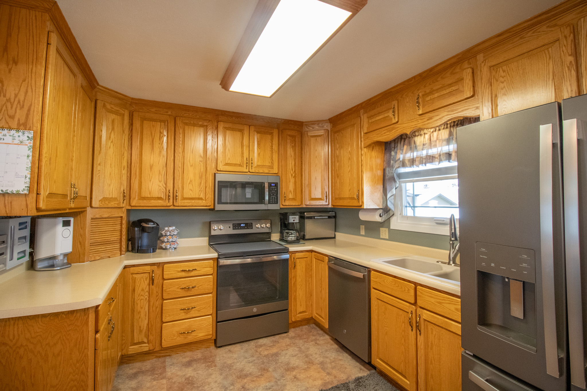 This well-maintained home in Rock Valley, IA, built in 1964, offers 1,508 square feet of comfortable living space with 3 bedrooms and 2 bathrooms. The open main level features a spacious dining area with access to the deck, a well-appointed kitchen, and a large living room with expansive windows that fill the space with natural light. In 2024, the windows on the main and upper levels were replaced, enhancing both energy efficiency and aesthetics. The upper floor is home to the primary suite, complete with a large bathroom featuring a whirlpool tub and shower. You’ll also find an additional bedroom and a generously sized laundry room on this level. The lower level includes a cozy family area, a bathroom with a shower, and another bedroom. The lowest basement level offers additional living space with another family area, storage, and access to the attached 3-stall garage, which features a work area in the third stall. Outside, the property boasts a beautiful backyard with a deck added in 2015, perfect for outdoor gatherings. A shed, built in 2018, provides extra storage space. This home combines timeless appeal with modern updates, making it a must-see! Contact us for more details!