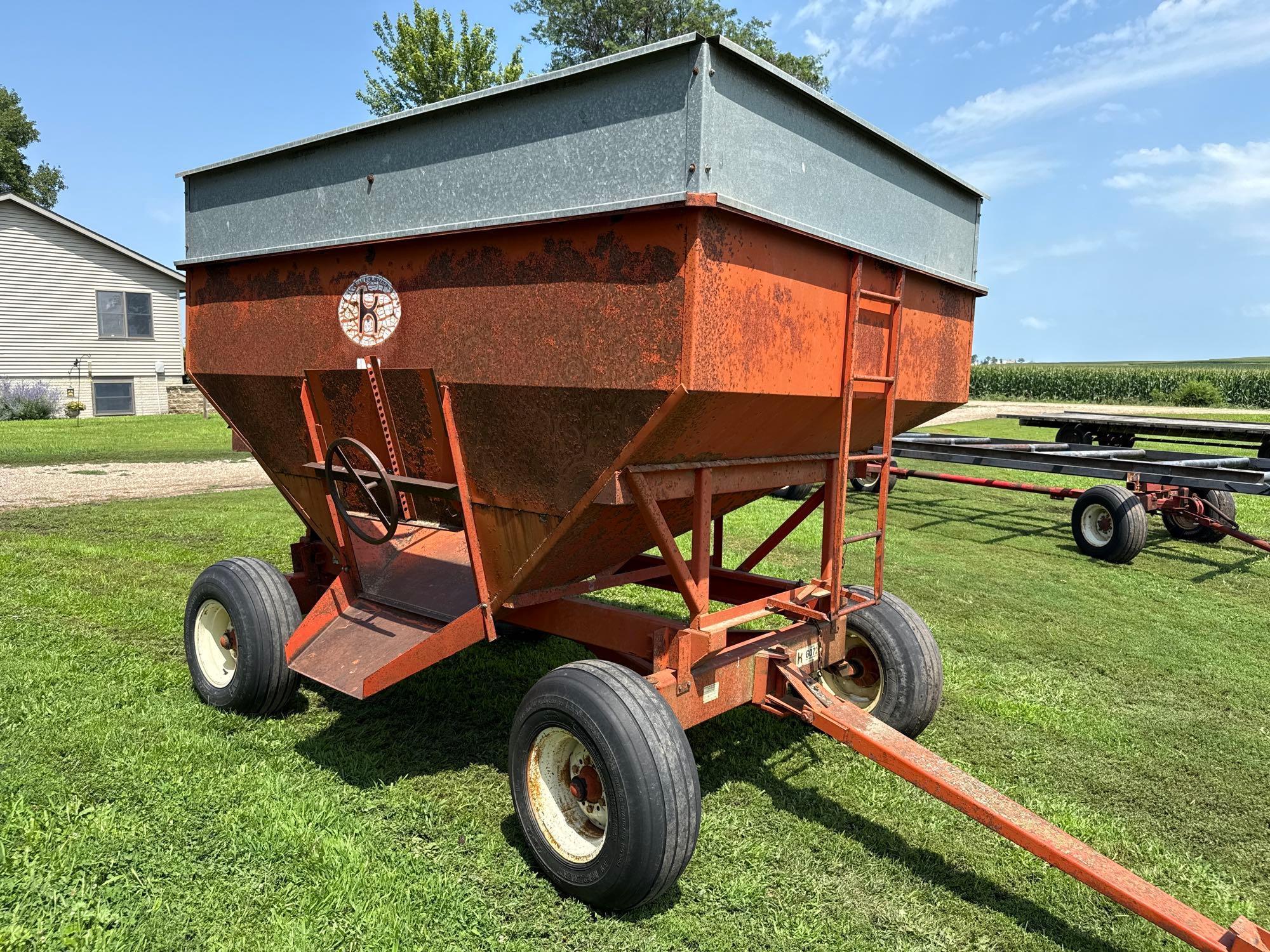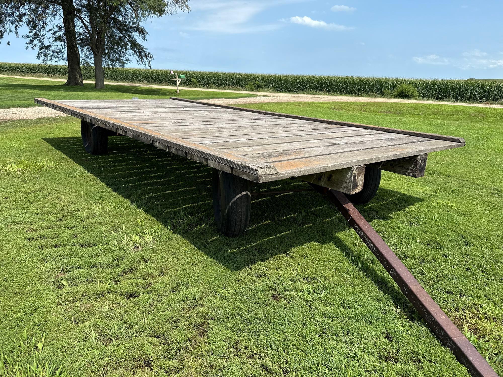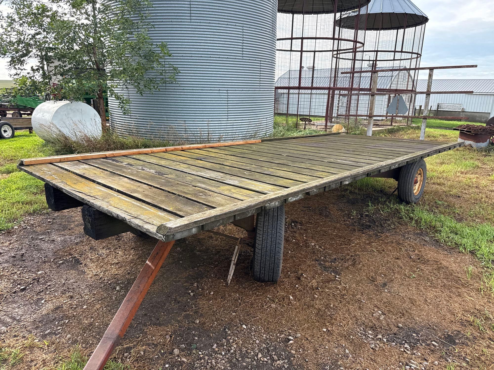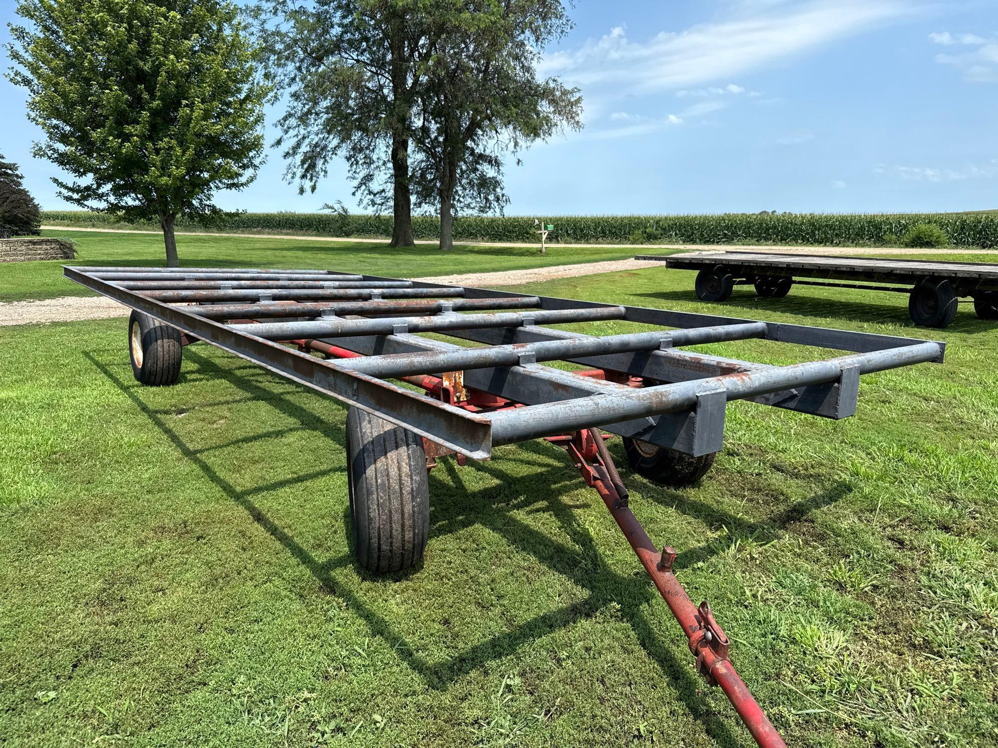 Flatbed/Hay Rack: Doon Sawmill 9ft x 23ft Steel Bale Wagon—Westendorf 8 ton running gear; 2-9ft x 20ft Wooden Flatbeds
