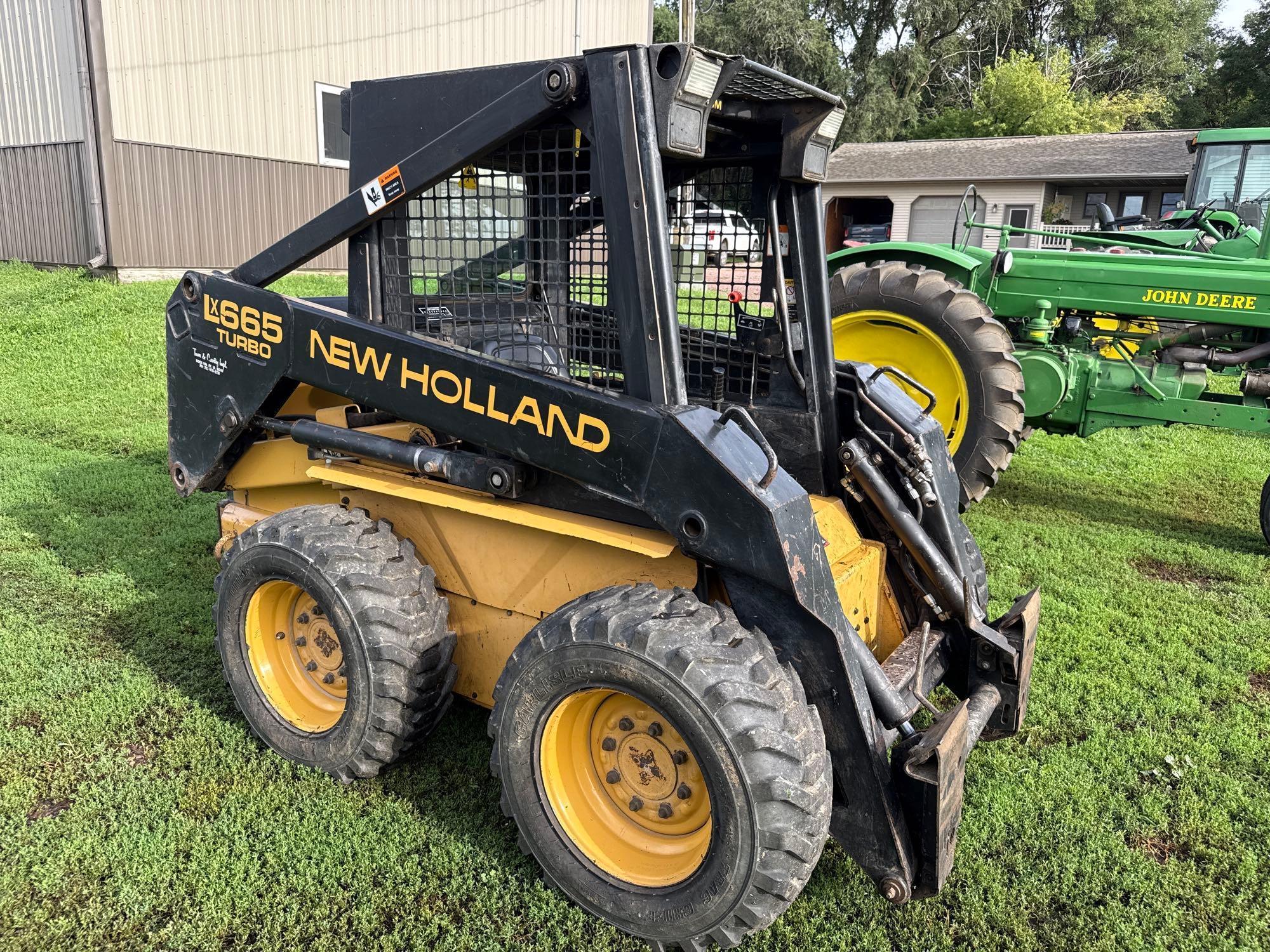Skidloaders: New Holland LX665 Skidloader—SN:869936, shows 2860 hours, manual quick tach, aux hyd, hand/foot controls