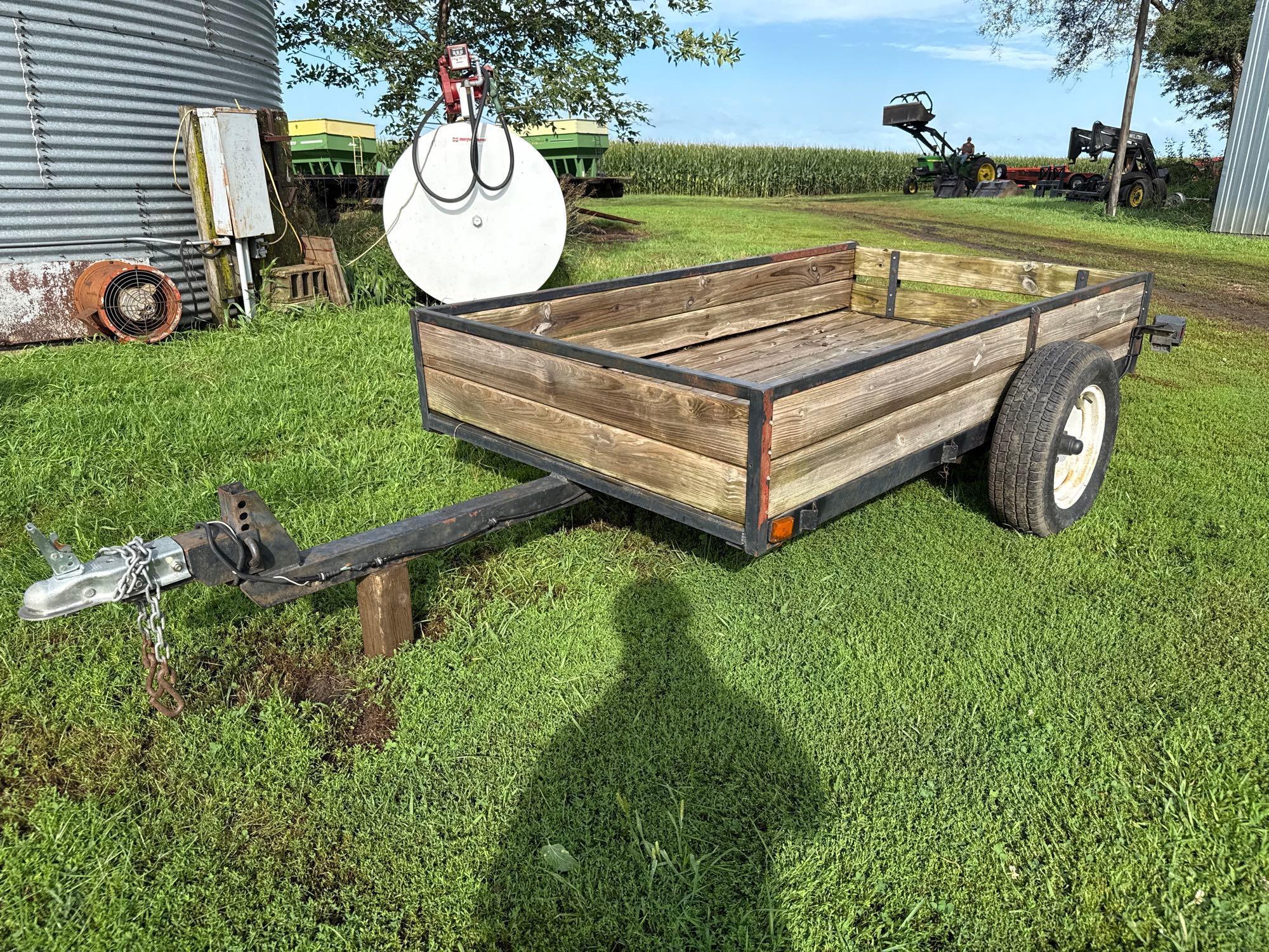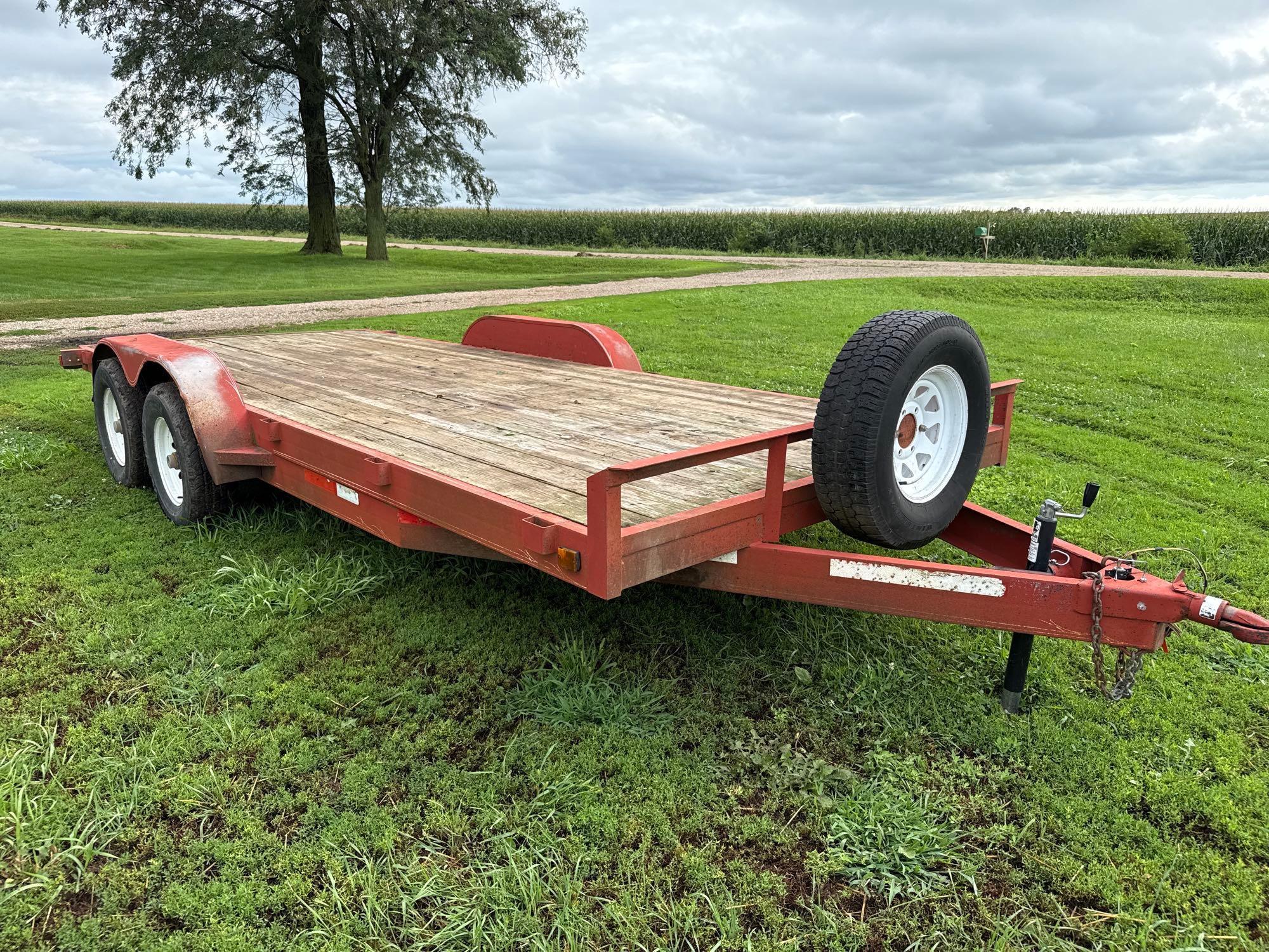 Bumper Hitch Trailers: Neal 83” x 18ft Heavy Duty Bumper Hitch Car Trailer—brakes, bearings and wiring recently checked, spare tire, tandem axle, pull out ramps: 51” x 8ft pull type lawn mower trailer—single axle, wood floor/sides: