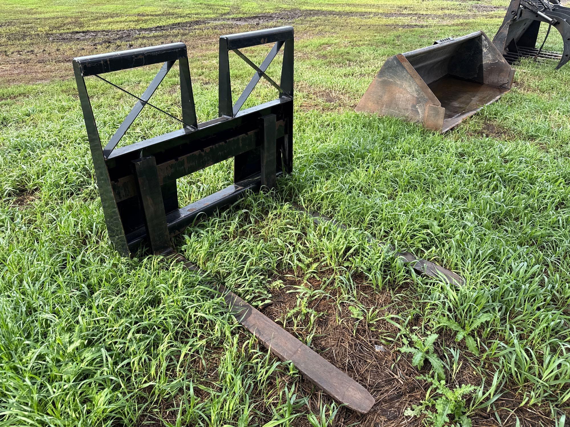 Skidloader Attachments: 48” skidloader quick tach pallet forks: 70” skidloader quick tach bucket: 67” Skidloader quick tach manure fork grapple bucket: Bobcat 310 manure tine fork bucket: