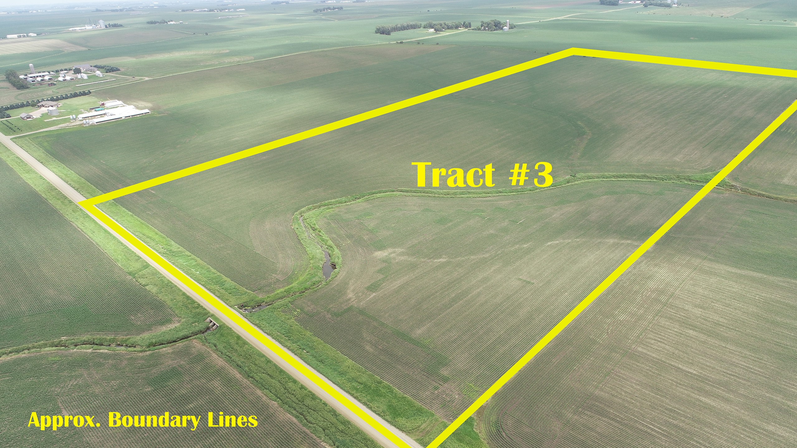 Tract 1 Location: From Oak St. Station in Inwood, IA go North on 182 for 2 miles to 220th ST., then go 1 mile East on 220th St. then go 1/2 mile North on Cleveland Ave. to the Farm. Farm is located on the West side of Cleveland Ave.