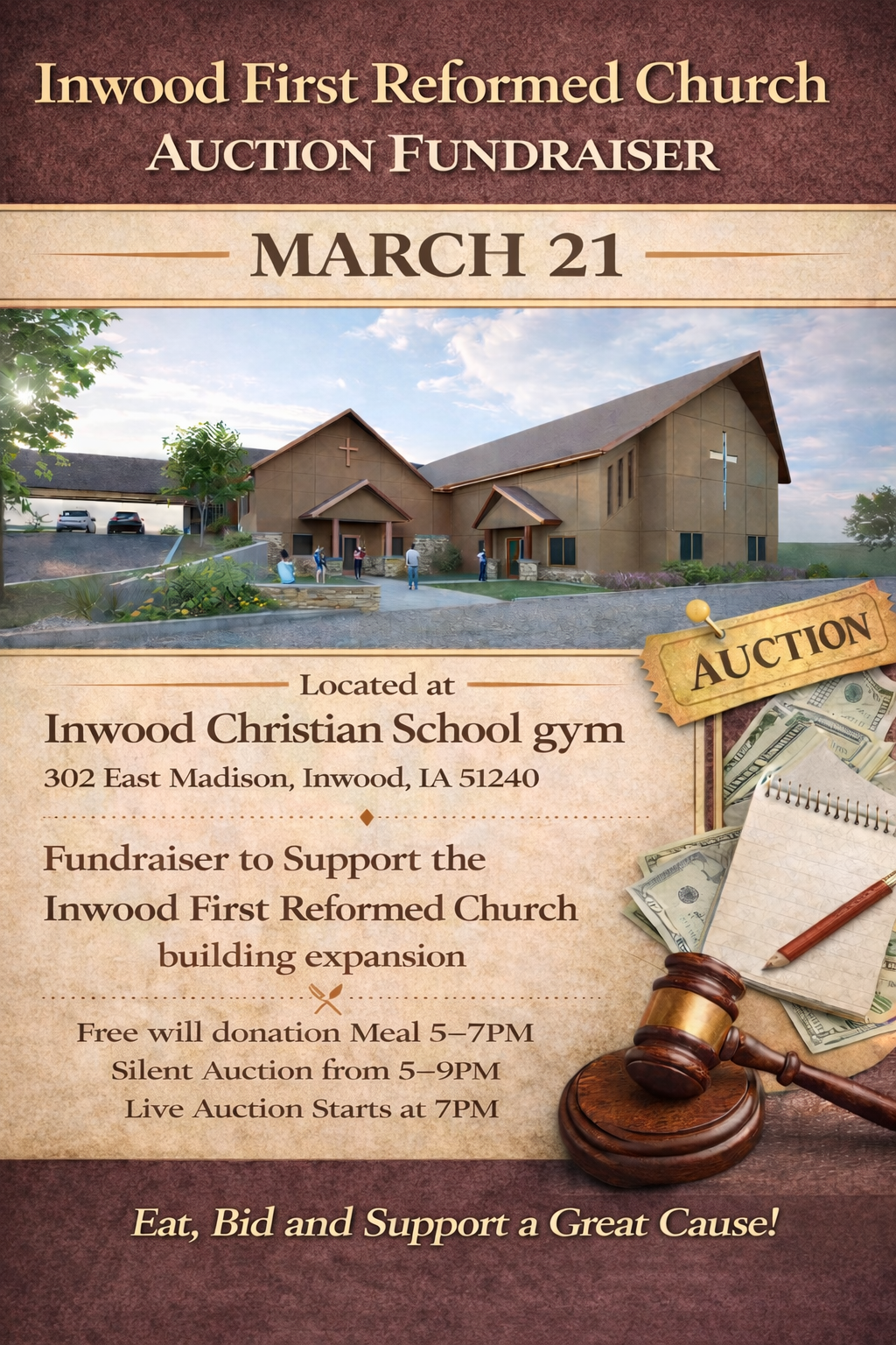 March 21, 2026 @ 7:00 P.M. -- Live Inwood First Reformed Church Auction Fundraiser