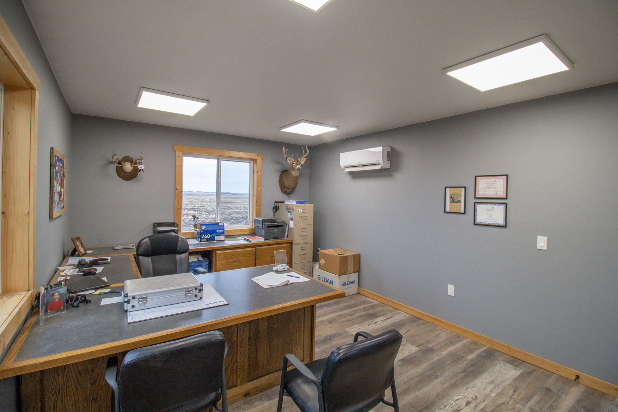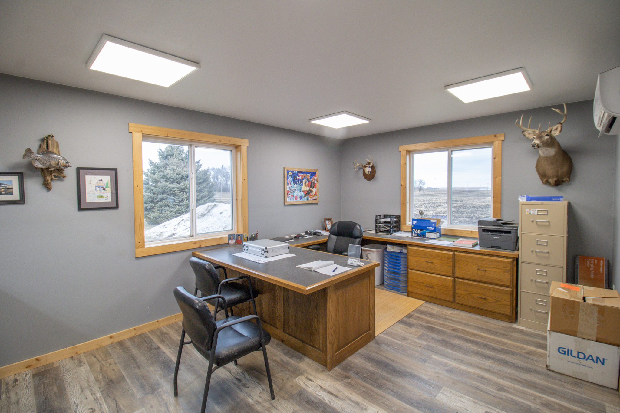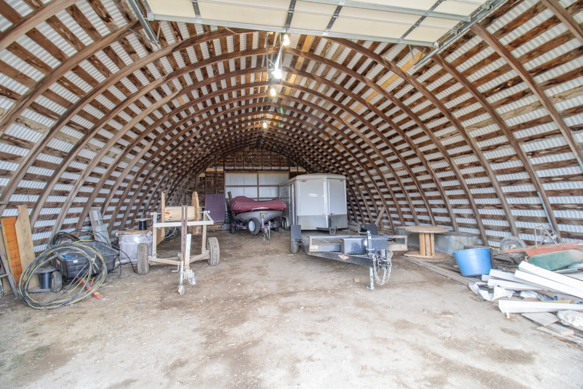 Outside, you’ll find an above-ground pool surrounded by a composite deck, ideal for summer enjoyment. The acreage also includes outstanding outbuildings, featuring a 50’ x 80’ heated building with 14’ sidewalls, four 12’ x 12’ overhead doors, LP radiant heat, a half bath, and a 12’ x 16’ office with a mini split system. A 33’ x 58’ Quonset cold storage building with a dirt floor and electric service and had the steel installed in 2023, along with a barn that had its steel replaced in 2018. This versatile acreage offers a rare combination of modern home amenities, recreational features, and high-quality buildings—perfect for work, storage, or hobbies.