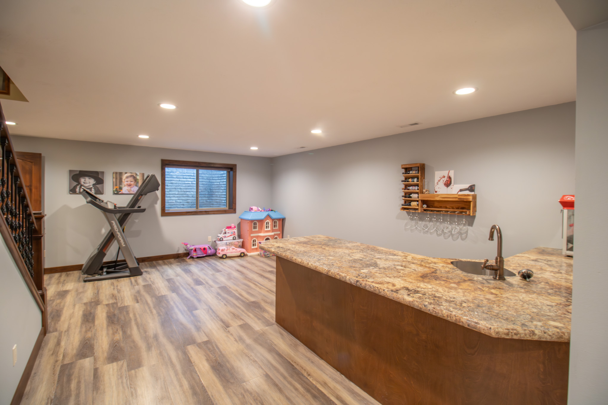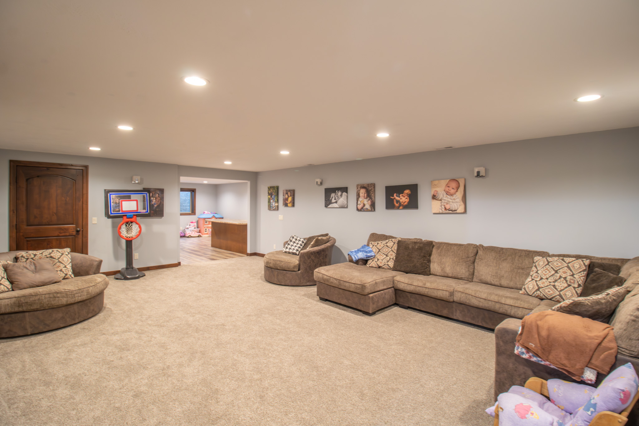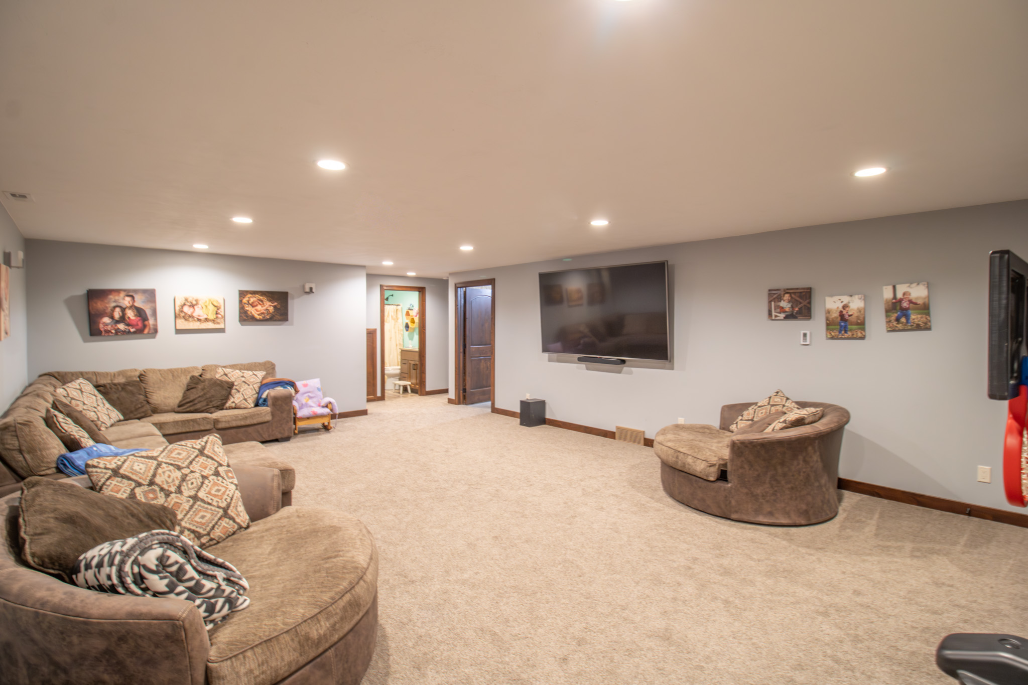 The finished basement offers even more living space with in-floor heat throughout, including a spacious family room, wet bar area, cozy reading nook, two additional bedrooms, a full bathroom, and an exercise room. Additional home features include LP Smart siding, central A/C, a geothermal heating system, and a 24’ x 36’ attached garage with in-floor heat.