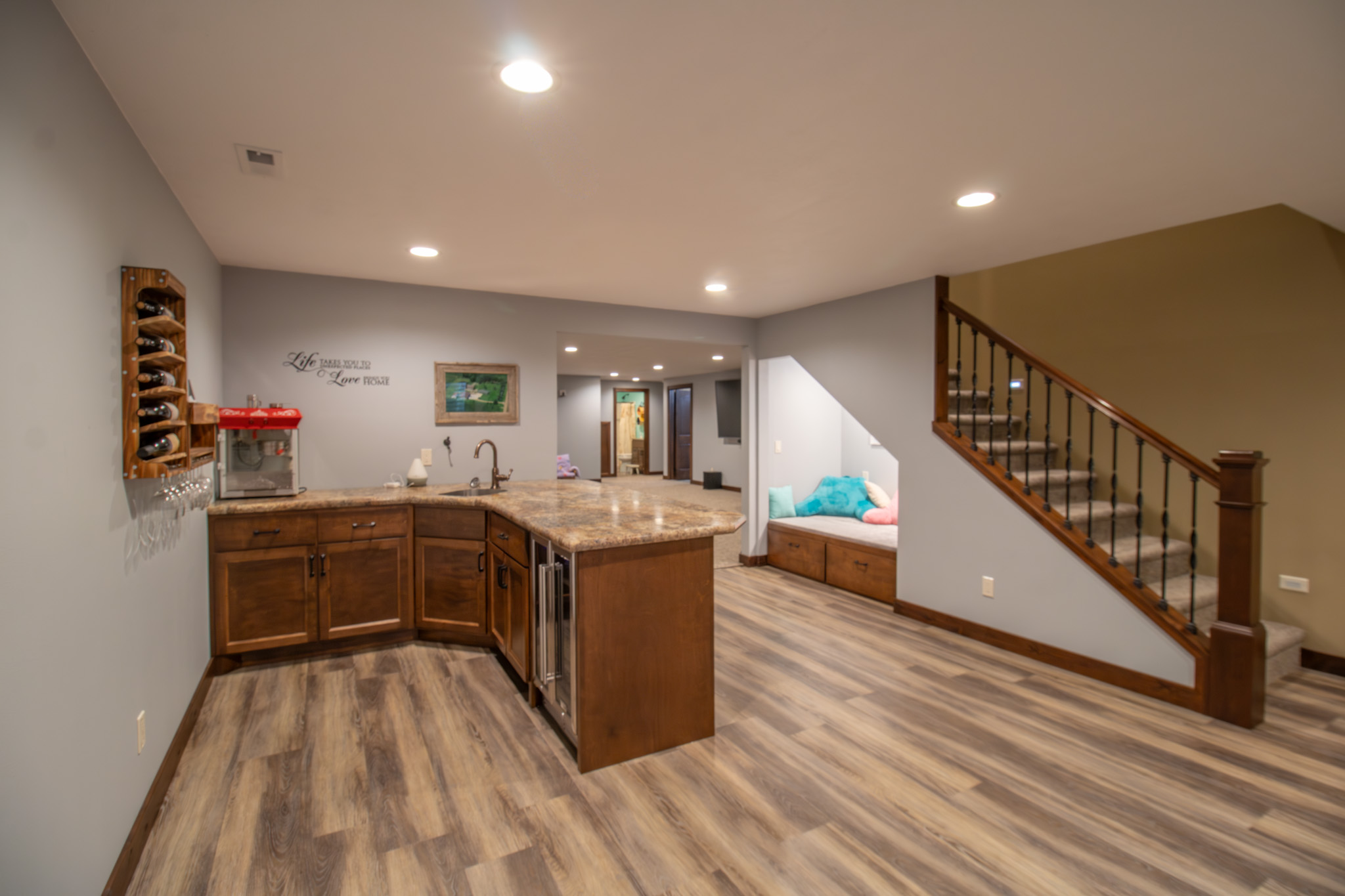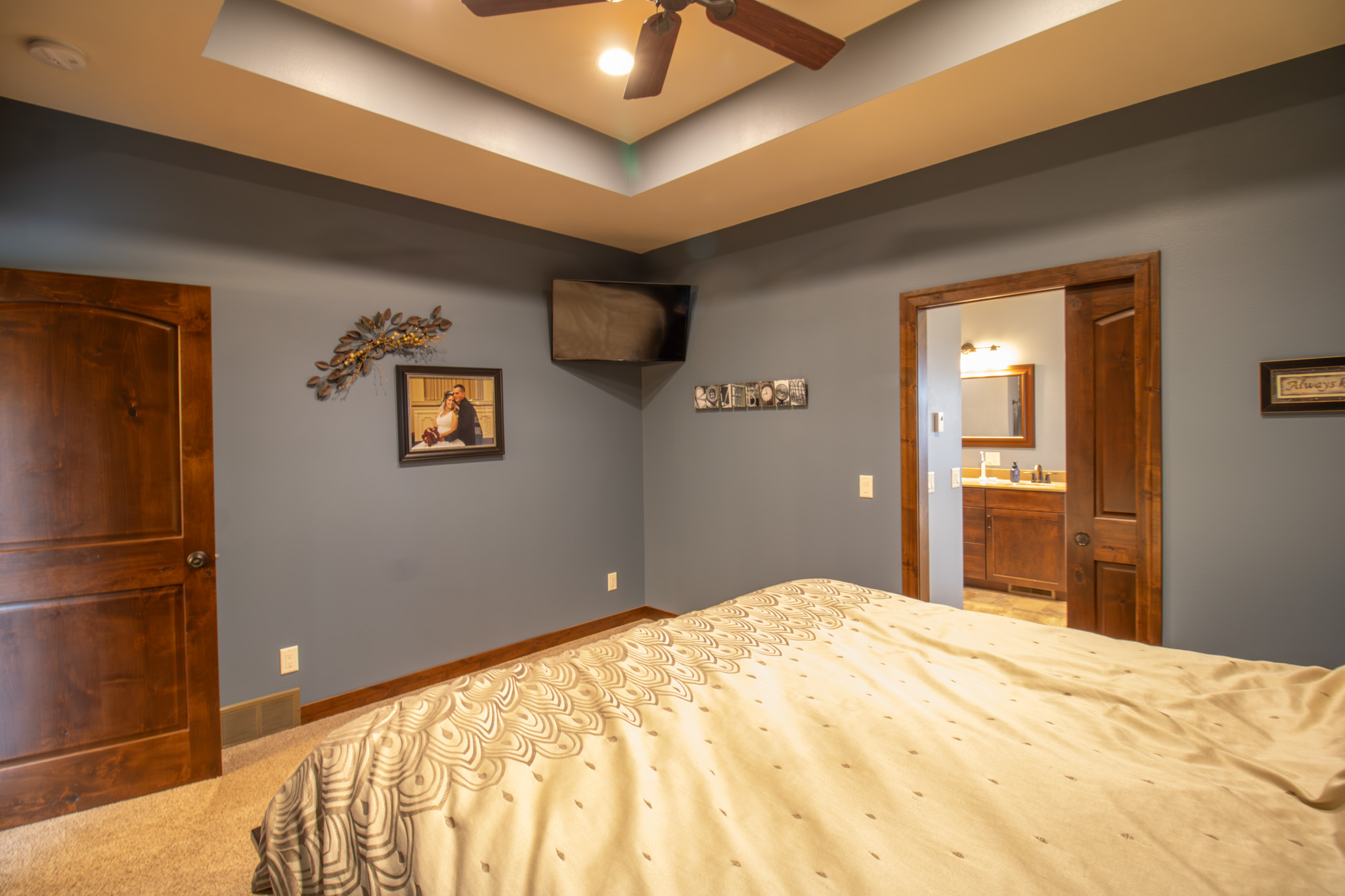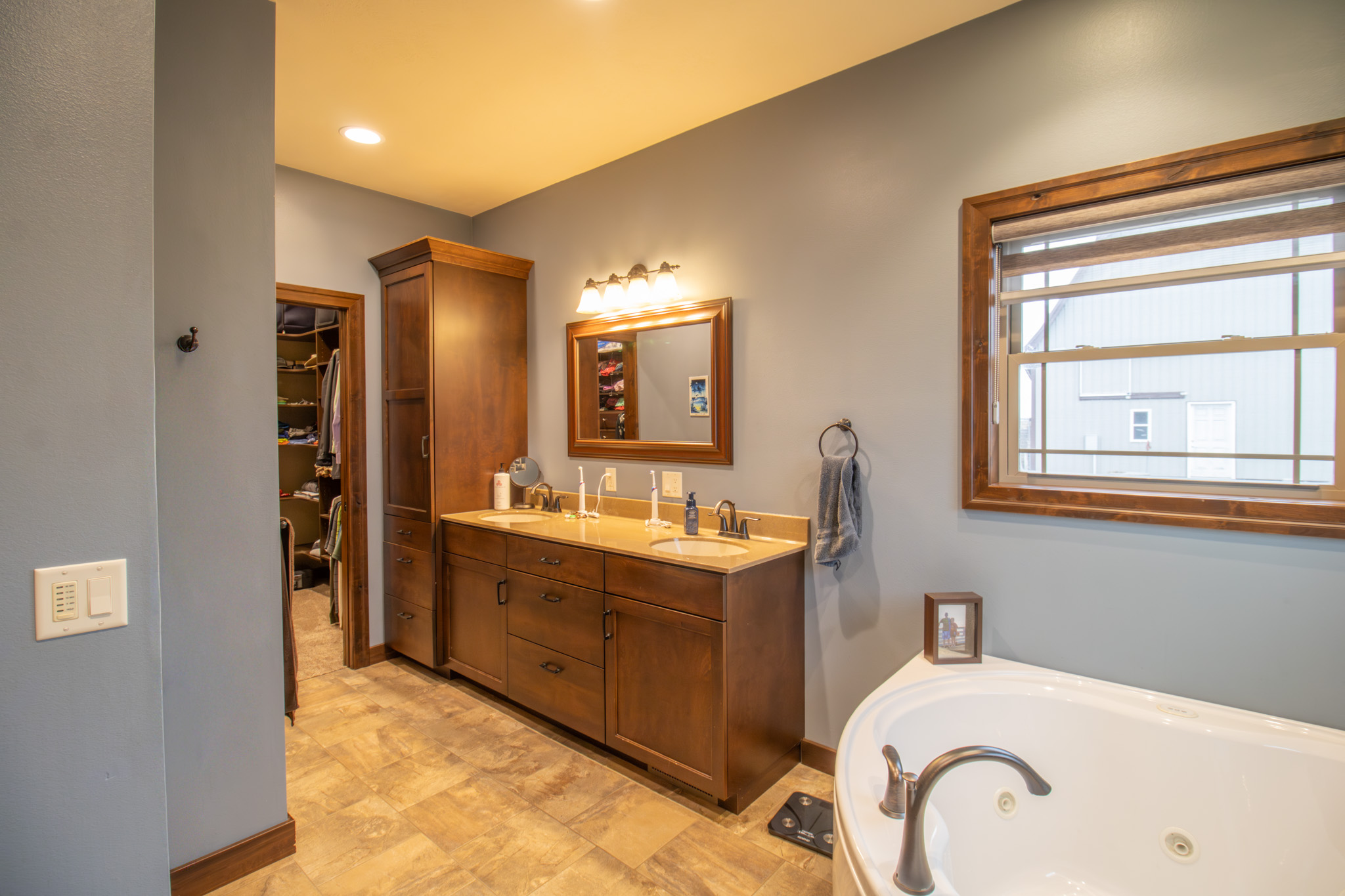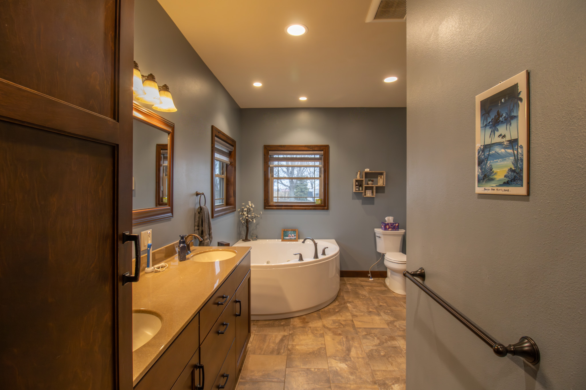 The finished basement offers even more living space with in-floor heat throughout, including a spacious family room, wet bar area, cozy reading nook, two additional bedrooms, a full bathroom, and an exercise room. Additional home features include LP Smart siding, central A/C, a geothermal heating system, and a 24’ x 36’ attached garage with in-floor heat.