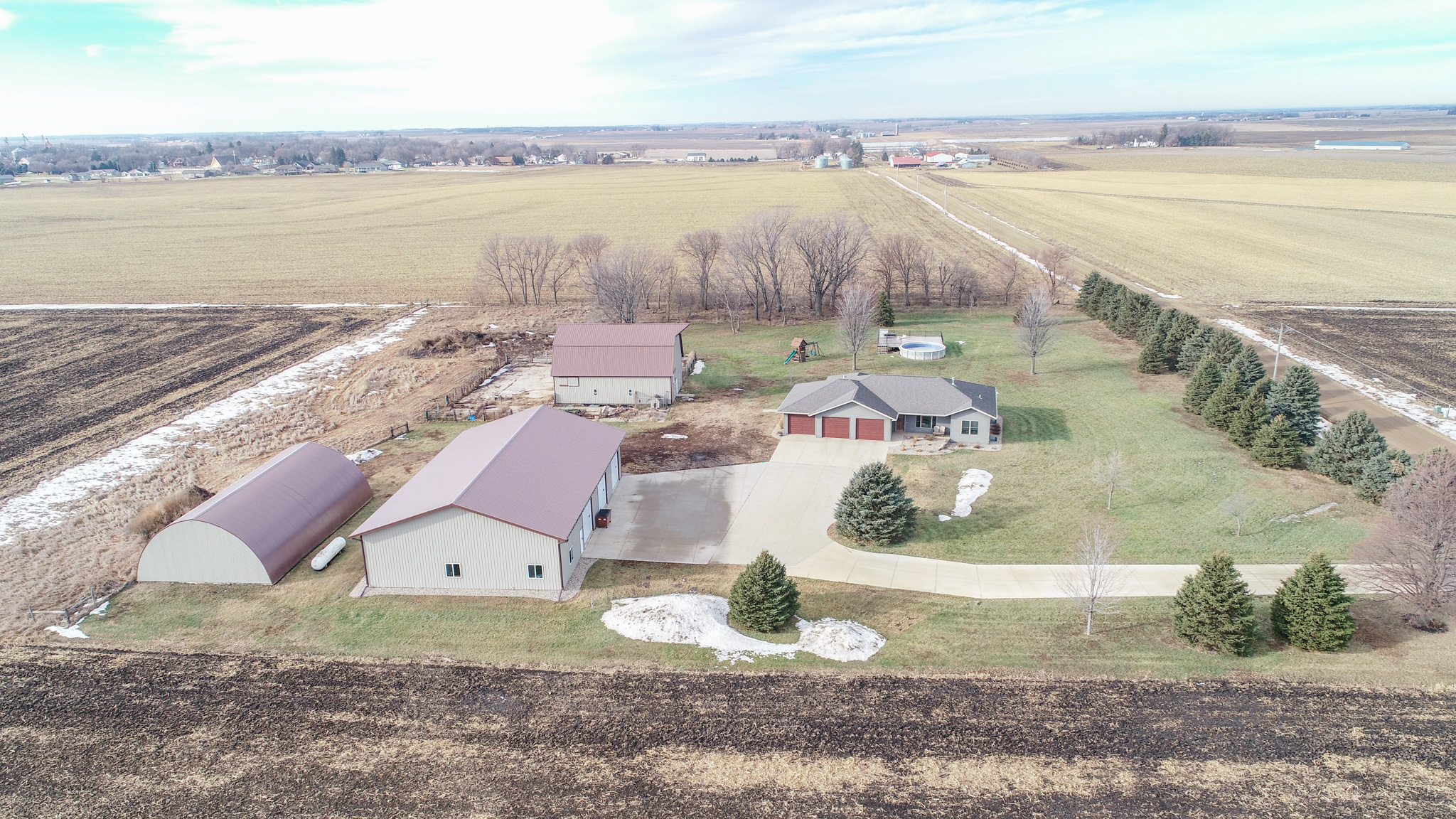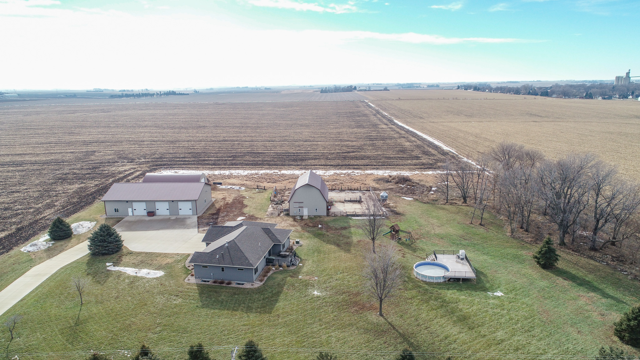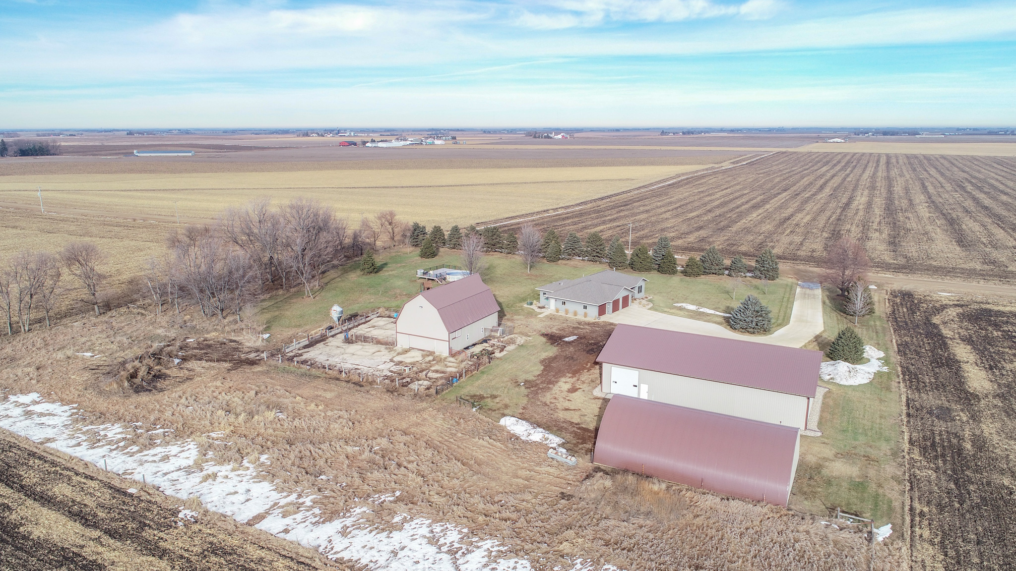 Here it is. Why consider building new when you can simply move right and immediately start to enjoy country living just outside Inwood, IA on this impressive 4.08-acre acreage offering space, comfort, and exceptional outbuildings! The 1,790 sq. ft. home features 5 bedrooms and 3 bathrooms with a well-designed open floor plan. The dream chef’s open kitchen with walk-in pantry flows seamlessly into the dining area and provides direct access to a composite deck—perfect for entertaining or enjoying the peaceful surroundings. The primary bedroom is located on the main floor and includes an attached bathroom with in-floor heat, a jacuzzi tub, onyx shower, and a walk-in closet! Two additional bedrooms (one currently used as an office), a full bathroom, and main-floor laundry complete the main level.