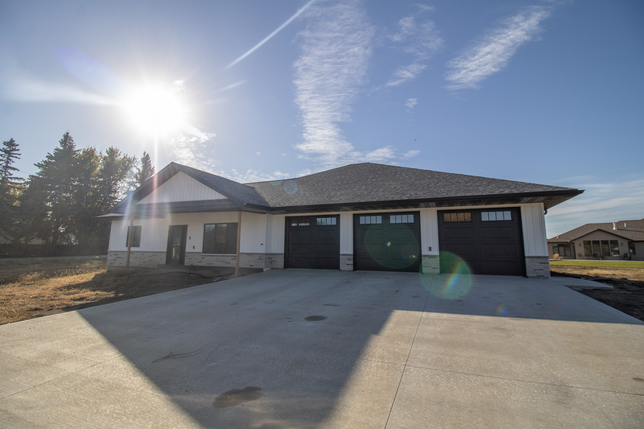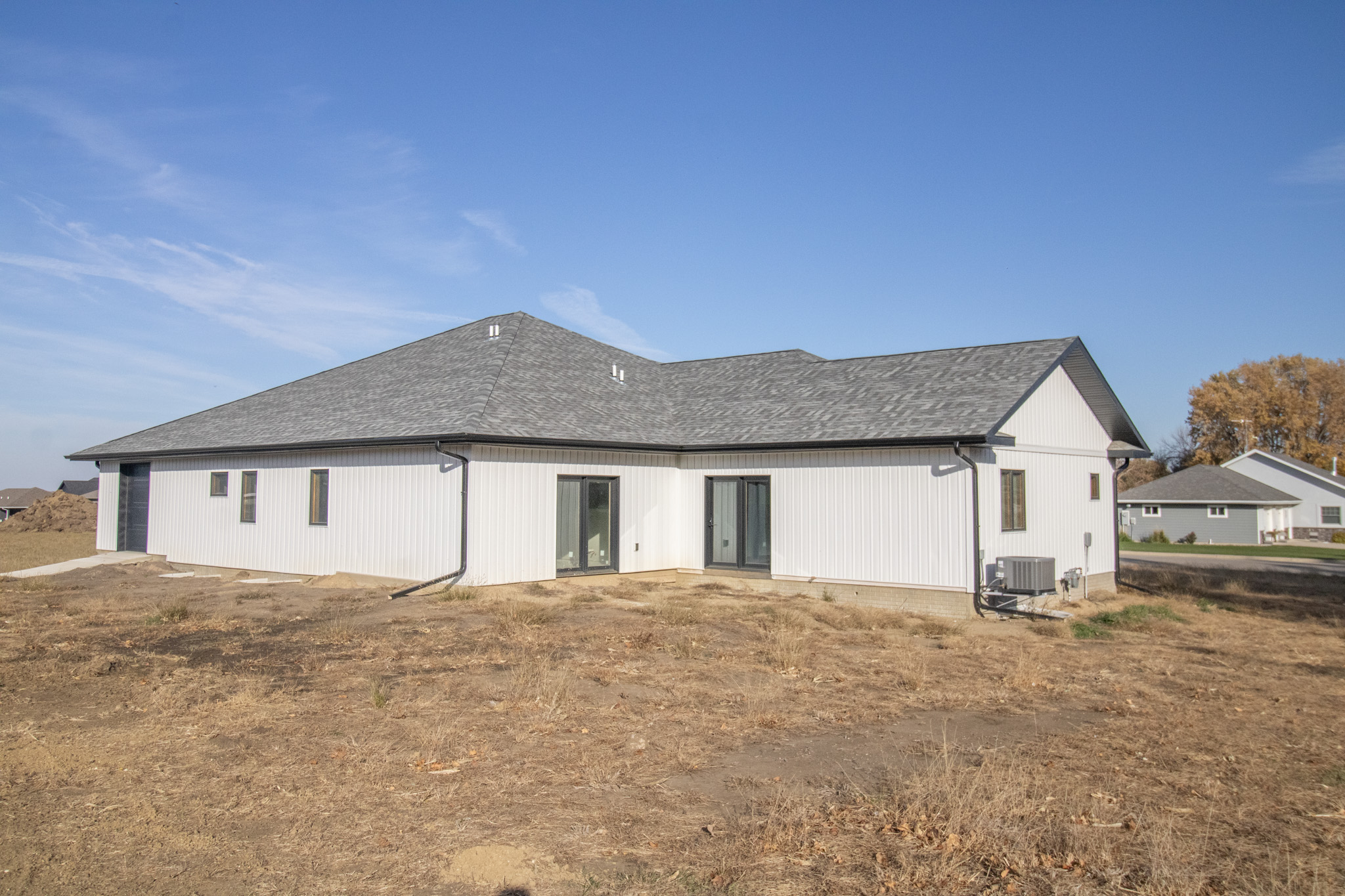 Welcome to this beautiful new ranch-style home in the growing community of Hull, Iowa! Built in 2025, this thoughtfully designed 3-bedroom, 2.5-bath home combines modern finishes with practical comfort, offering an inviting space for everyday living and entertaining. Step inside to an open-concept layout featuring a bright, spacious living room with a cozy fireplace, seamlessly flowing into the kitchen and dining area—perfect for gatherings with family and friends. The primary suite provides a relaxing retreat with a walk-in closet and a luxurious en suite bathroom featuring a soaker tub and tile shower. Two additional main-floor bedrooms share a full bath, and a convenient half bath serves guests. Enjoy the ease of main-floor laundry and a spacious three-stall garage with a bonus area—ideal for a workshop, storage, or hobby space. The unfinished basement offers endless potential for future living space, additional bedrooms, or a home gym. Set on a generous 130’ x 144’ lot, this home features LP Smart Siding, an asphalt roof, gas furnace, and central air conditioning for year-round comfort and efficiency.