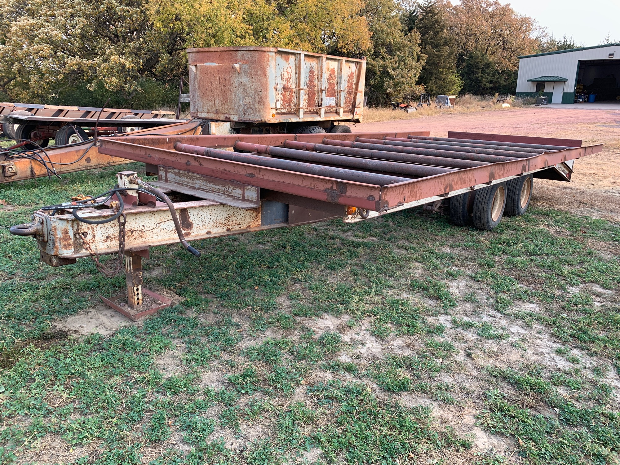 Trailer: 10ft x 23ft Steel Bale Hauling Trailer—J&M gear, 385/65R22.5 Tire’s, 8 bales on bottom row, well built : 10ft x 23ft Steel Bale Hauling Trailer—Demco gear, 8 bales on bottom row, 385/65R22.5 tires, good carrier : 11ft x 25 1/2 ft Custom Bale Hauling trailer—Trailer was a flatbed trailer and had metal rails installed for hauling bales, no title, Pintle hitch, tandem Dually axle, 215/75R17.5 tires : 9ft x 20ft Flatbed— Westendorf 6 bolt gear, ext tongue, deck needs some work, 10.00-15 tires, : 1010 Aluma 81 inch x 18 1/2ft Aluminum Flatbed Trailer— Tandem 3500# axles, 205/75R14 tires, lights, gvwr-7000#, floor tie downs, pull out ramps, the brakes on this trailer have been disconnected(brakes are in working order if the new buyer desires to reconnect them, good trailer : 8ft x 14ft Steel Pull Type Dump Pup Trailer— 58 inch sides, tandem dually axle, 11R22.5 tires, manual release door, metal floor, hoist works well : 10ft x 18ft Steel Pull Type Dump Trailer— Hyd end Silage gate, single axle, 445/65R22.5 tires, steel floor, manual grain gate in endgate, hoist works well :