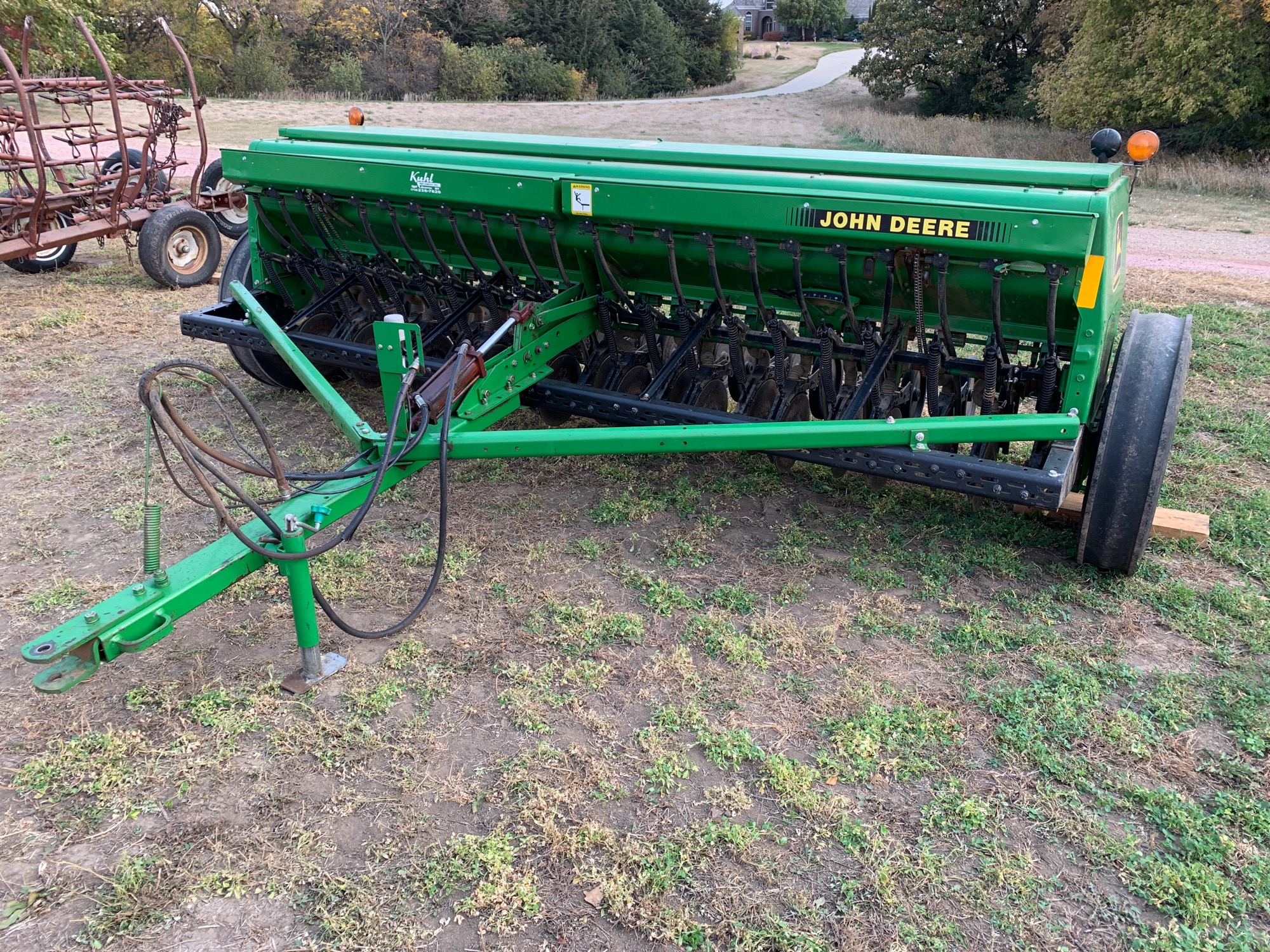 Seeder: John Deere 450 12ft Pull Type Seeder—7 inch spacings, Firestone tubeless 7.5-20 tires, transport lights