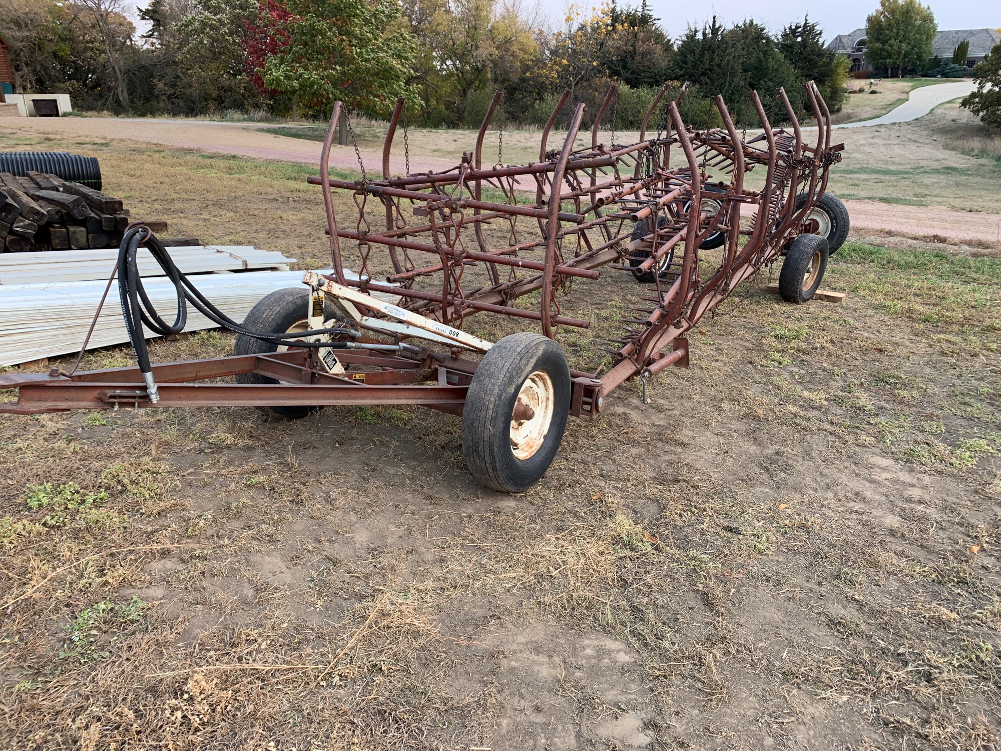 Rake: 2019 New Holland Pro Cart 1428 14 Wheel V Rake—1 Owner–Used on 20 acres—double Center kicker wheel kit with hydraulic lift, extra large 60″ rake wheels, extra large 7.5 mm tines, walking tandem wheels, 205/75R15 tires, only used on 20 acres of alfalfa, sharp rake, sn-ykzsn0082 :