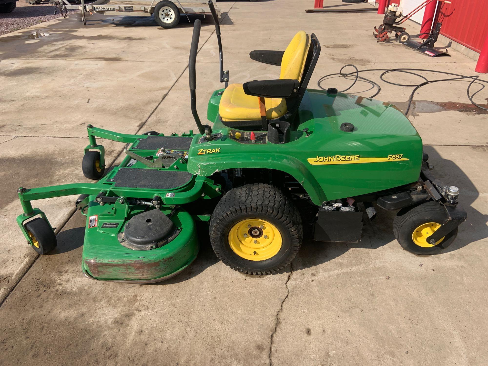 Mowers: John Deere F687 Zero turn Mower–23HP engine, hours unknow, 7 iron deck, 54″ deck: Simplicity Broadmoor 16 riding lawn mower-44″ deck, 16HP engine, sprayer with booms: