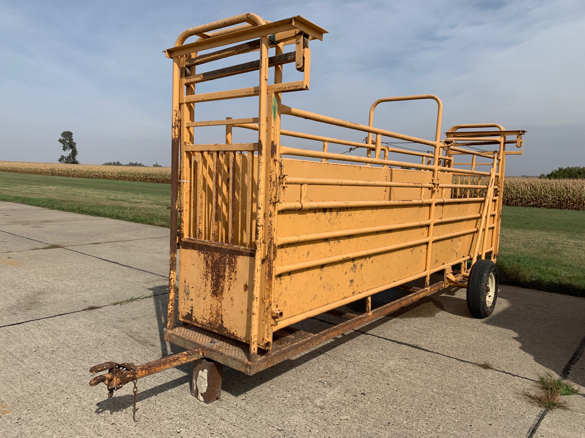 Livestock Equipment: 20ft Foremost Portable Alleyway—manual lift, 225/75R15 tires: 8ft Titan West Hyd Squeeze Chute–3HP elec motor, flip down side doors: assort of cattle gates: cattle panels: 16–60″ SDI dry feeders: 40–stainless steel livestock waterers with drip valves: 8—24ft Freestanding cattle panels-D&S welding mfg