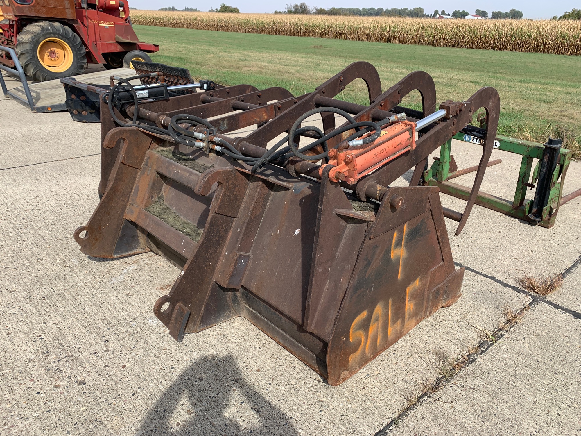 Payloader/Skidloader Attachments: 8ft Payloader Bucket With Grapple: 8ft skidloader quick tach tire pusher-MFG by Terrys repair: