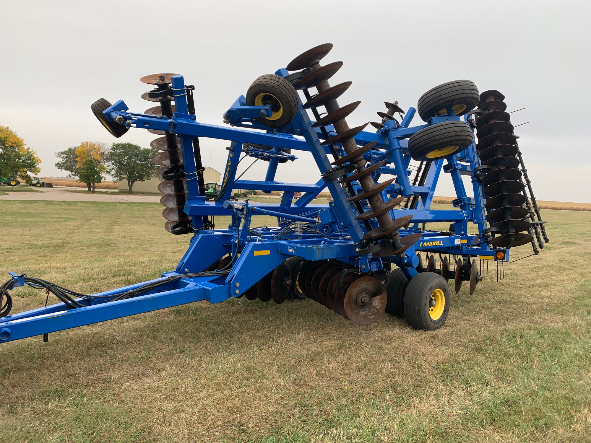 Tillage Equipment: Landoll 6230 26ft Disk—SN-62F1001915, 3 bar drag, hyd fold, transport lights, walking tandems, 23” front blades, 23 ¼” rear blades: Case IH 200 Tigermate 30ft Field Cultivator—Model TM II, SN-JFH0039335, 2 bar harrow with rolling baskets, walking tandems:
