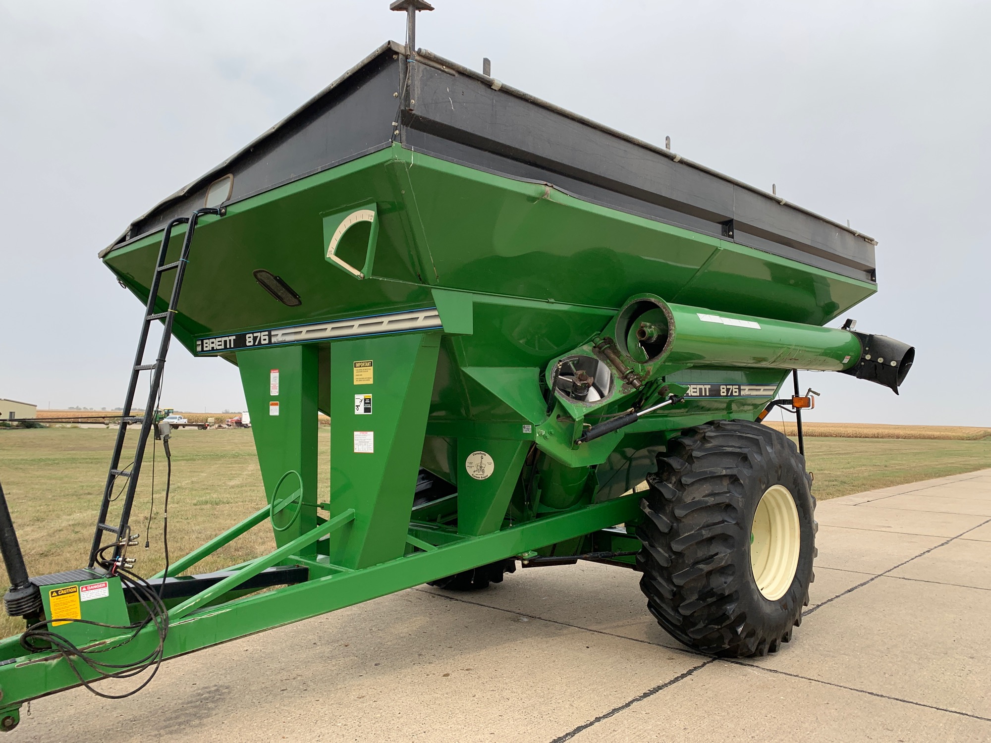 Grain Cart: Brent 876 Grain Cart—SN-B18-380-115, 16” corner unload auger, 30.5-32 tires, 1000 pto, manual roll tarp, lights, rear custom hitch:
