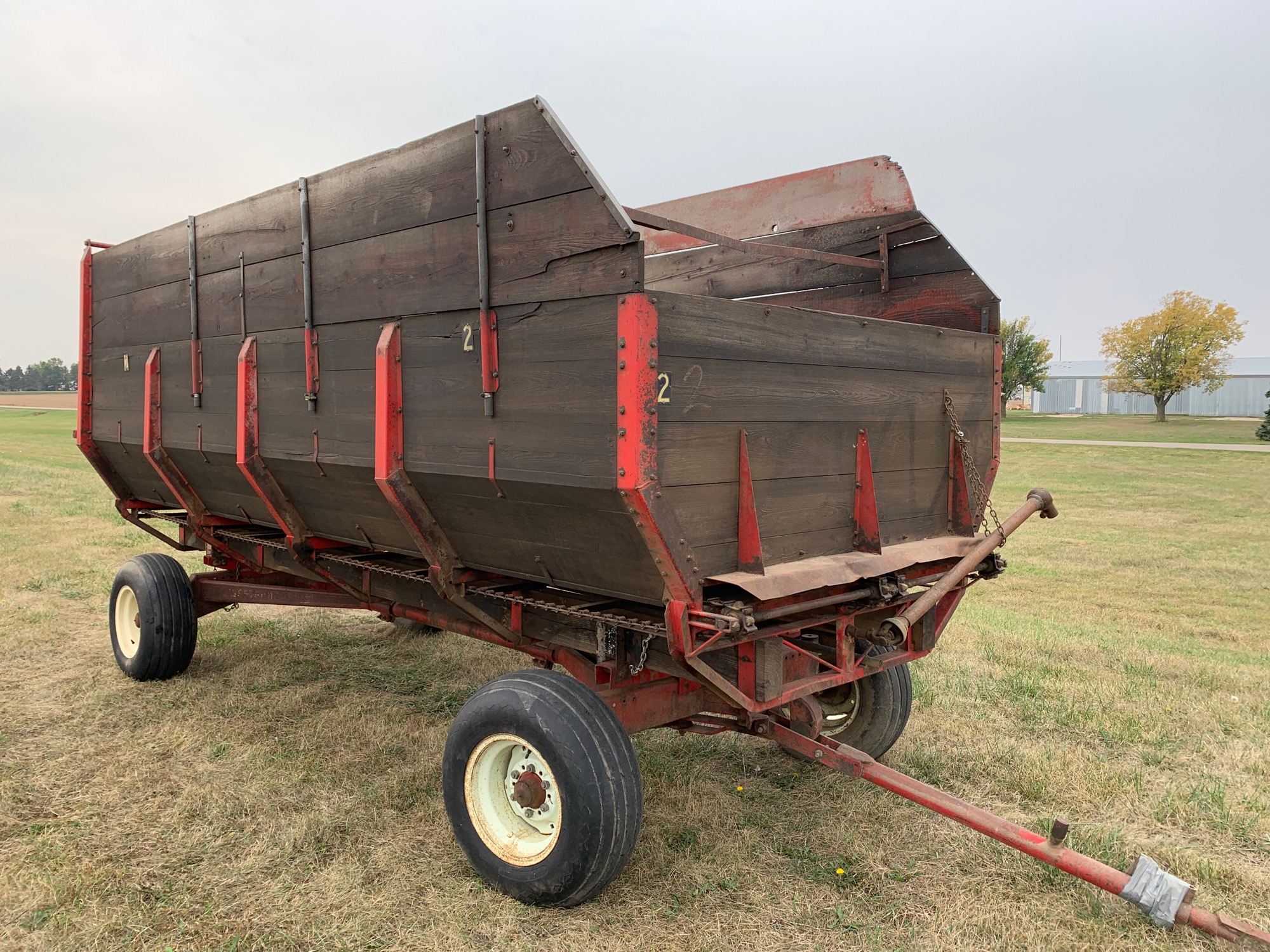 Farm Equipment: 16ft Roorda Silage Wagon—Westendorf 6 bolt gear, 540 pto, double web: 9ft x 22ft flatbed—Westendorf 6 bolt gear, ext tongue, 12.5L-15 tires: 1500 gallon poly tank on gear:
