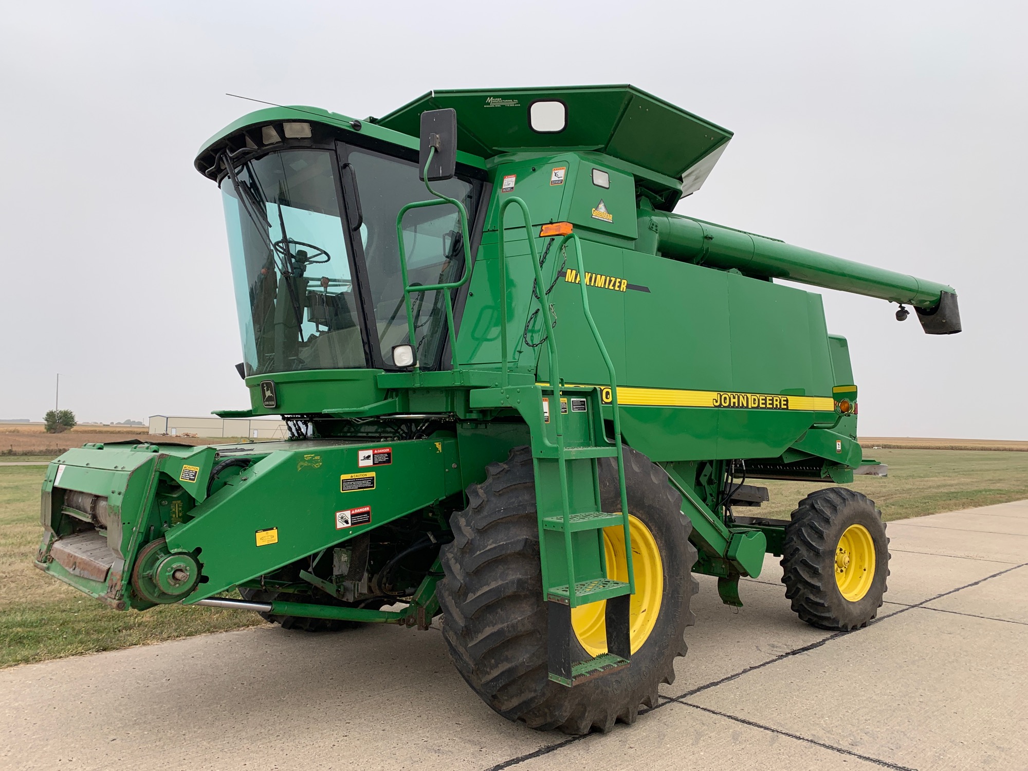 Combine: John Deere 9510 Maximizer Combine—SN-H09510X680595, shows 4628 eng hours, shows 3381 separator hours, chopper, vittetoe chaff spreader, maurer bin extension, 30.5L-32 front tires, 16.9-26 rear tires, heat, a/c, radio,