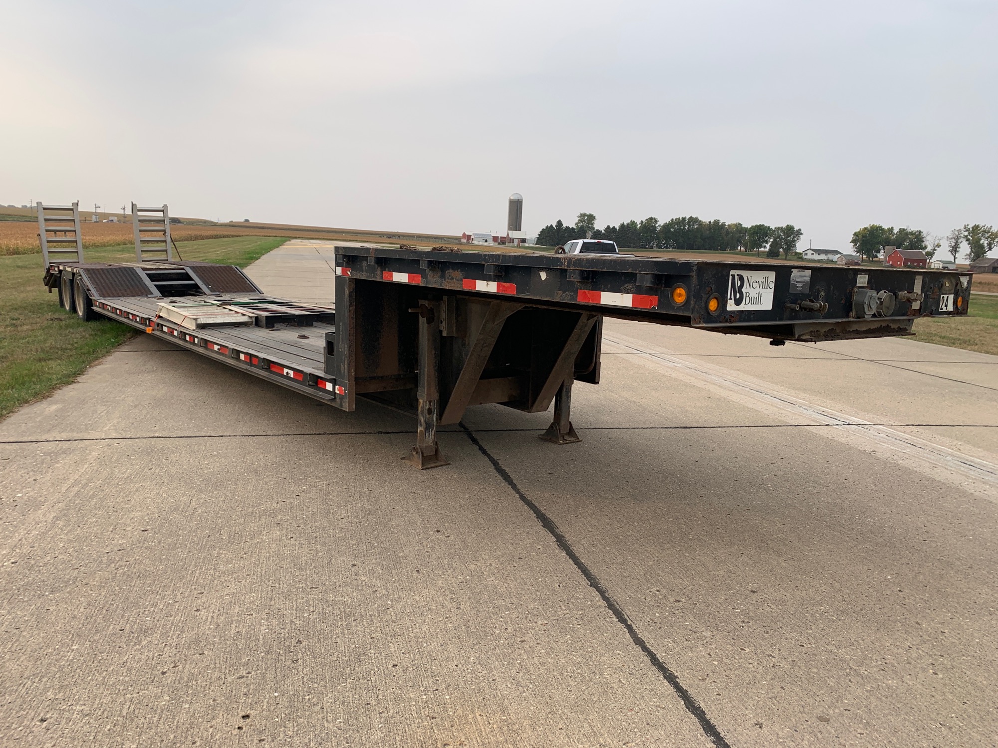 Semi Equipment Trailer: 2002 Neville 100” x 53ft Semi Equipment Trailer—VIN-1N9DD53243E175813, front deck measures 10ft, lower deck is 26ft, rear over axles is 17ft, trailer has pullout side extensions for oversized load, ramps, tandem rear axle, Firestone 255/70R22.5 tires, air ride, 68,000 GVW, 20,000# GAVWR per axle, 40,000# weight rating: