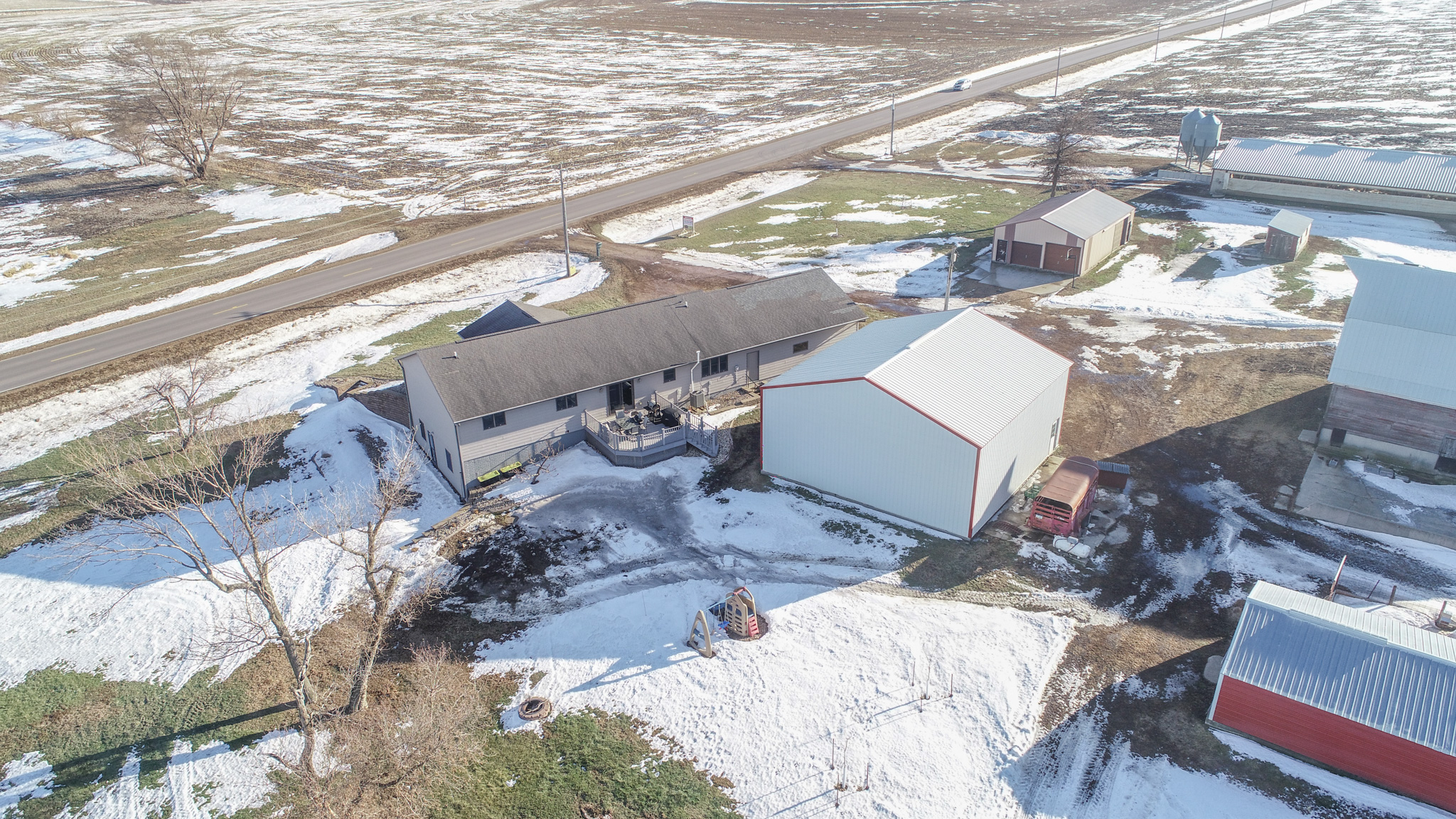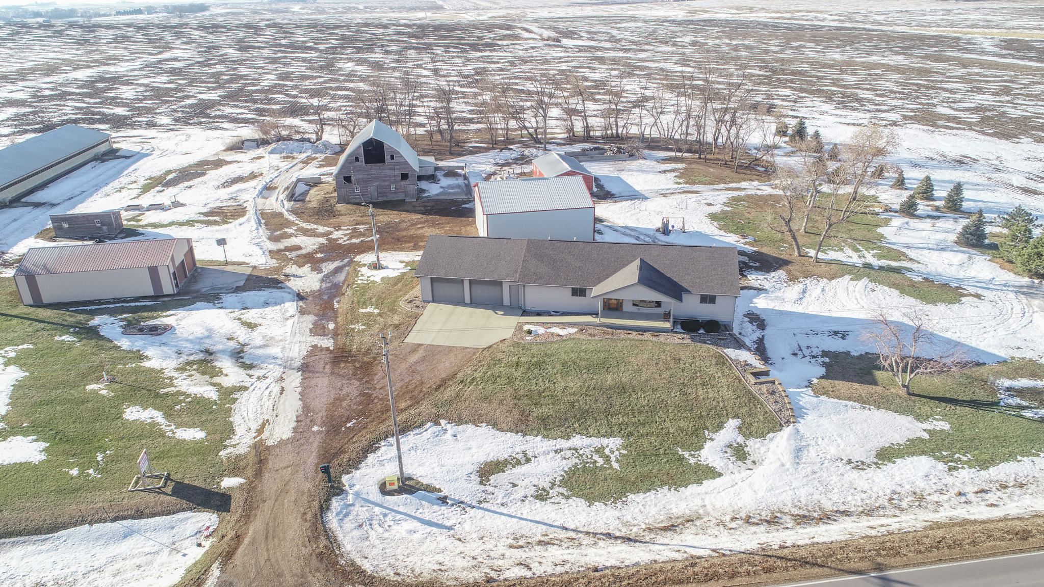 This 3.42-acre property outside of Boyden, IA offers a comfortable ranch-style home and an excellent selection of outbuildings for work, storage, or hobbies. The main floor features a spacious living room, an eat-in kitchen with adjoining dining area, the primary bedroom with its own bathroom access, three additional bedrooms, a full bathroom, and main-floor laundry. The walk-out basement adds even more usable space with a large family room, a kitchenette, a full bathroom, an additional bedroom plus a nonconforming bedroom (needs egress), mechanical room, and storm cellar. Outside, the acreage is equipped with several functional outbuildings, including a 39 x 39 machine shed with 15 x 17 sliding doors and a cement floor, a 20 x 40 chicken coop, an older barn, and a 25 x 42 insulated storage building with three overhead doors and a cement floor—providing outstanding versatility for equipment, livestock, and storage needs. Contact us today for more details!