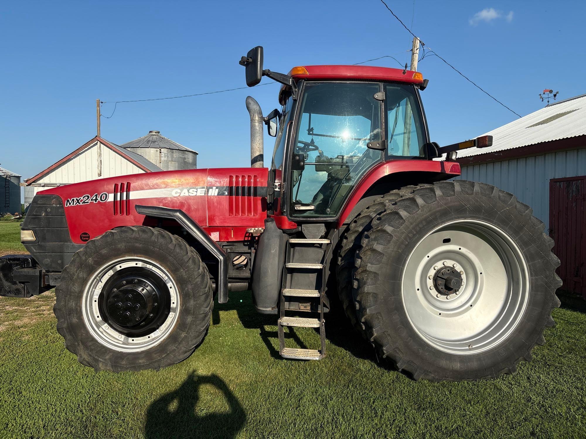 2000 Case IH MX 240 MFWD Tractor–SN:X2404C4JJA0103684, shows 5031 hours, Powershift transmission, air heat, radio, big 1000 pto, 4 hydraulic remotes, new cap pump and over 14000.00 spent on it this spring. 380/85 R34 Fronts, 480/80 R46 rears, 5 suite case weights, Field ready and always shedded and good working order