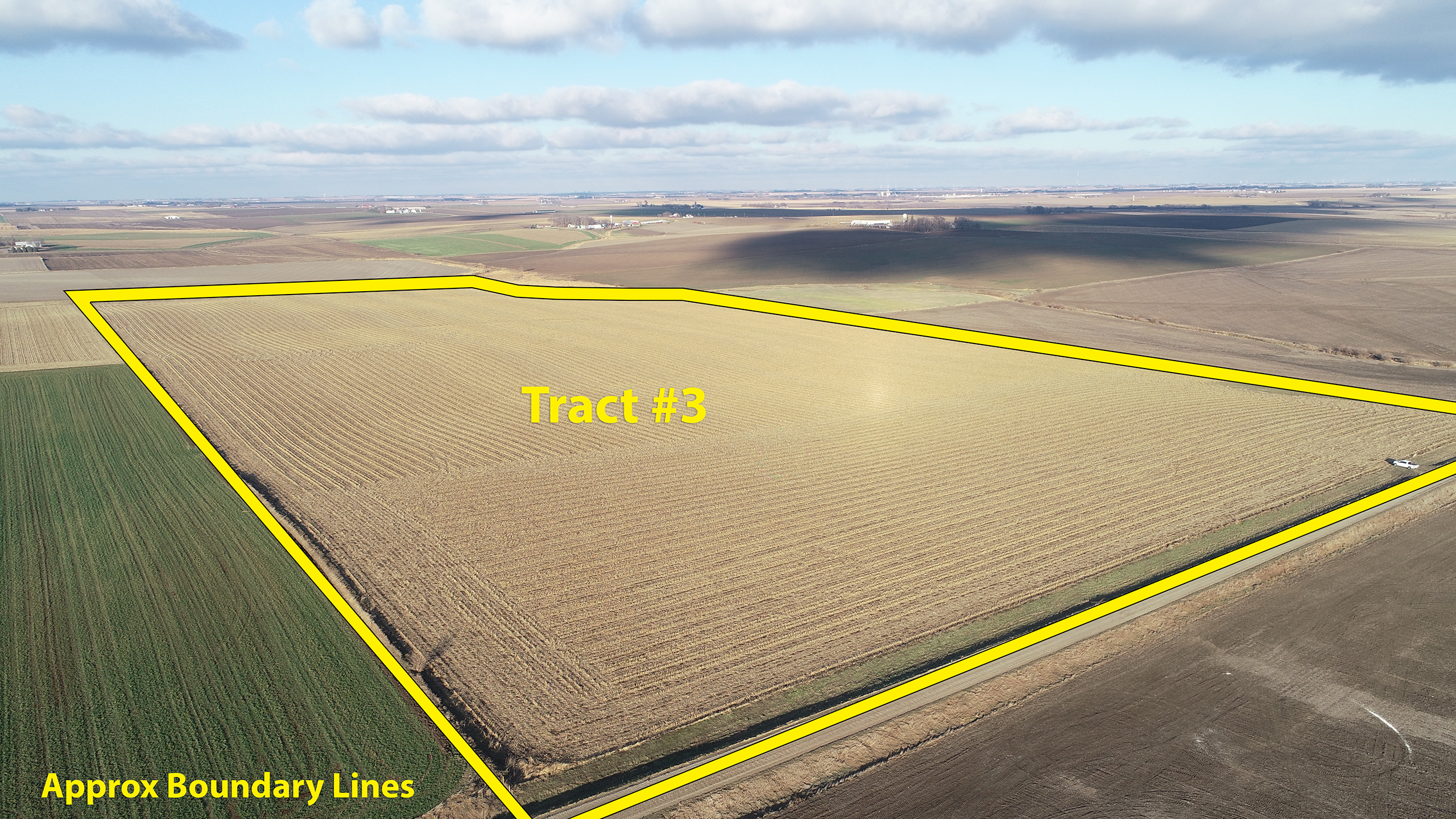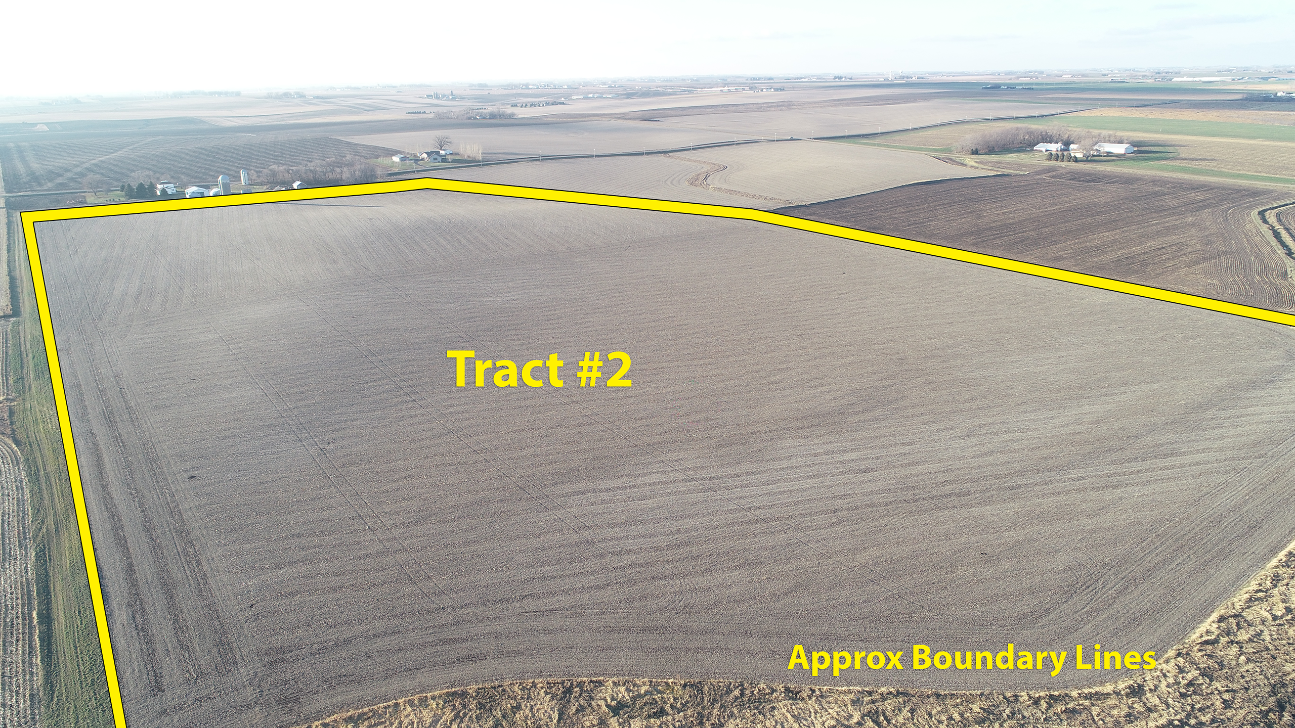 Farm Location: From the corner of 400th St. & Kingbird Ave in Newkirk, IA go South on Kingbird Ave for 2 miles to Tract 1. Tract 1 is located in the Southeast corner of the intersection of 420th St & Kingbird Ave. Tract 2 is located directly South of Tract 1 and if it is sold to someone other than the buyer of Tract 1 or 3, separate access from Kingbird Ave will be granted to the buyer of Tract 2. Tract 3 is located directly South of Tract 2 and is accessed by going one mile South from Tract 1 on Kingbird Ave to 430th St. then going 1/4 mile East on 430th St. to Tract 3. Tract 3 is on the North side of 430th St.