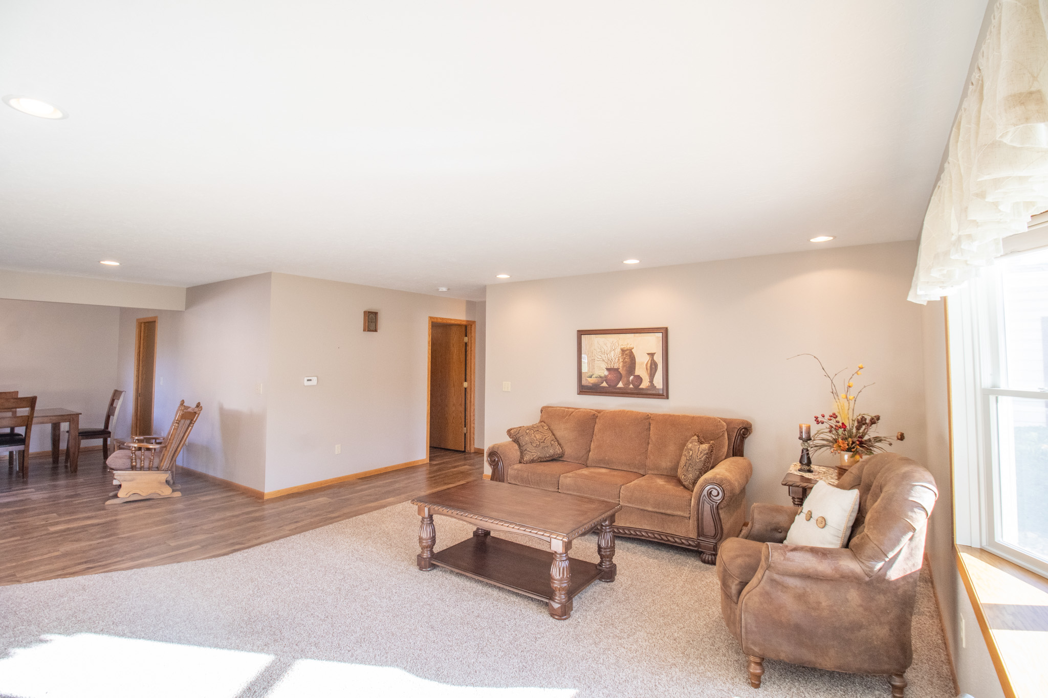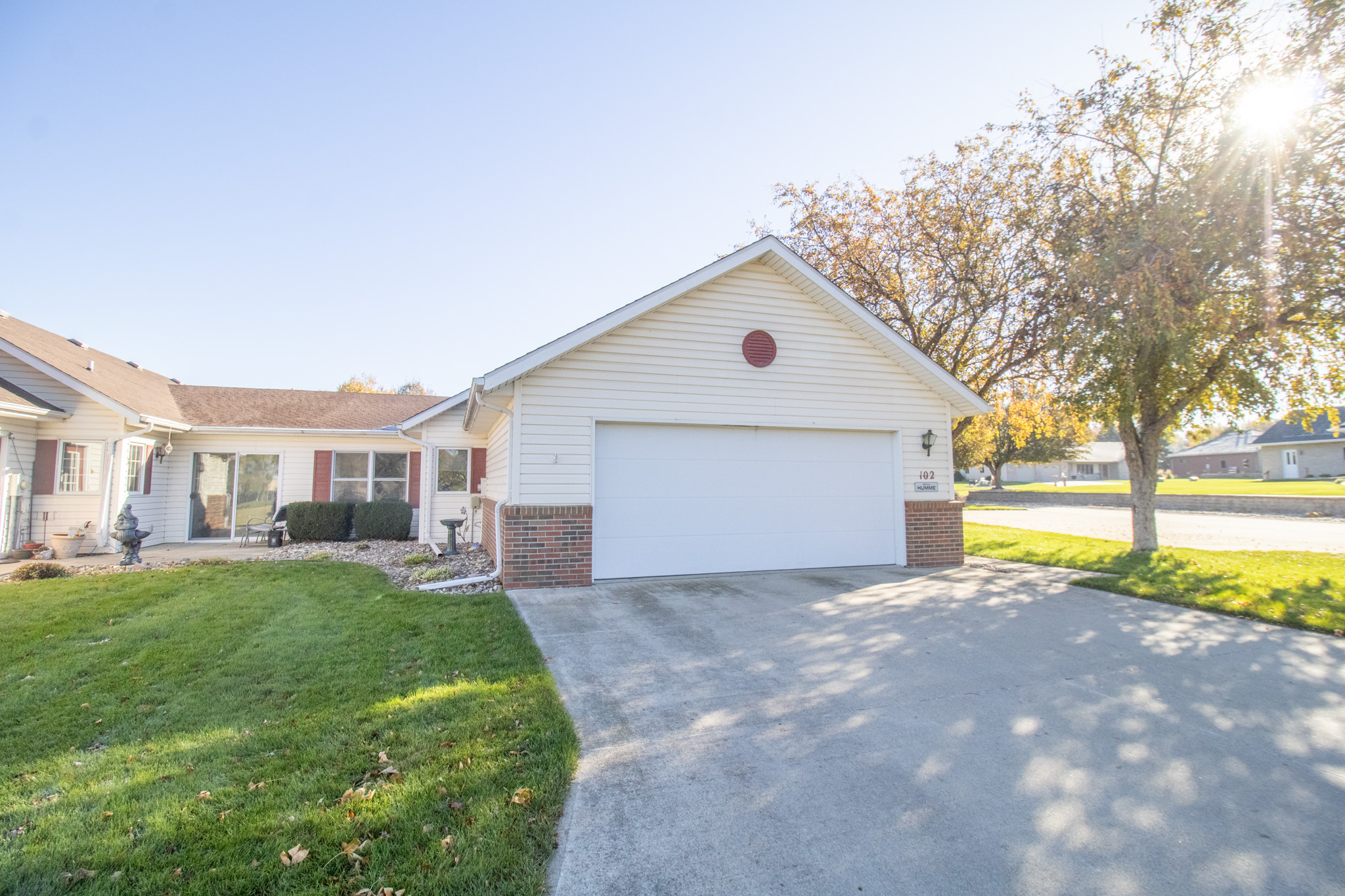 Experience comfortable and convenient living in the desirable Heritage Estates community of Rock Valley, IA. This well-maintained 2-bedroom, 1-bath condo offers 1,262 sq. ft. of main-floor living in a peaceful setting. As an end unit, it provides added privacy and natural light throughout. Step inside to find newer flooring and a spacious layout that includes a bright living area, open dining space, and a functional kitchen. The primary bedroom features a large walk-in closet and direct access to the bathroom, which is complete with a tiled shower and heated tile floors for year-round comfort. Enjoy the convenience of main-floor laundry and a 20×22 attached garage. Heritage Estates also offers access to a community room just down the hall, perfect for gatherings and social events. HOA dues of $150/month cover exterior maintenance, lawn care, and snow removal, making this an excellent choice for low-maintenance living.